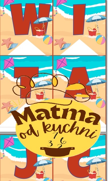 Napis "WITAJCIE WAKACJE" w formie proporczyka.