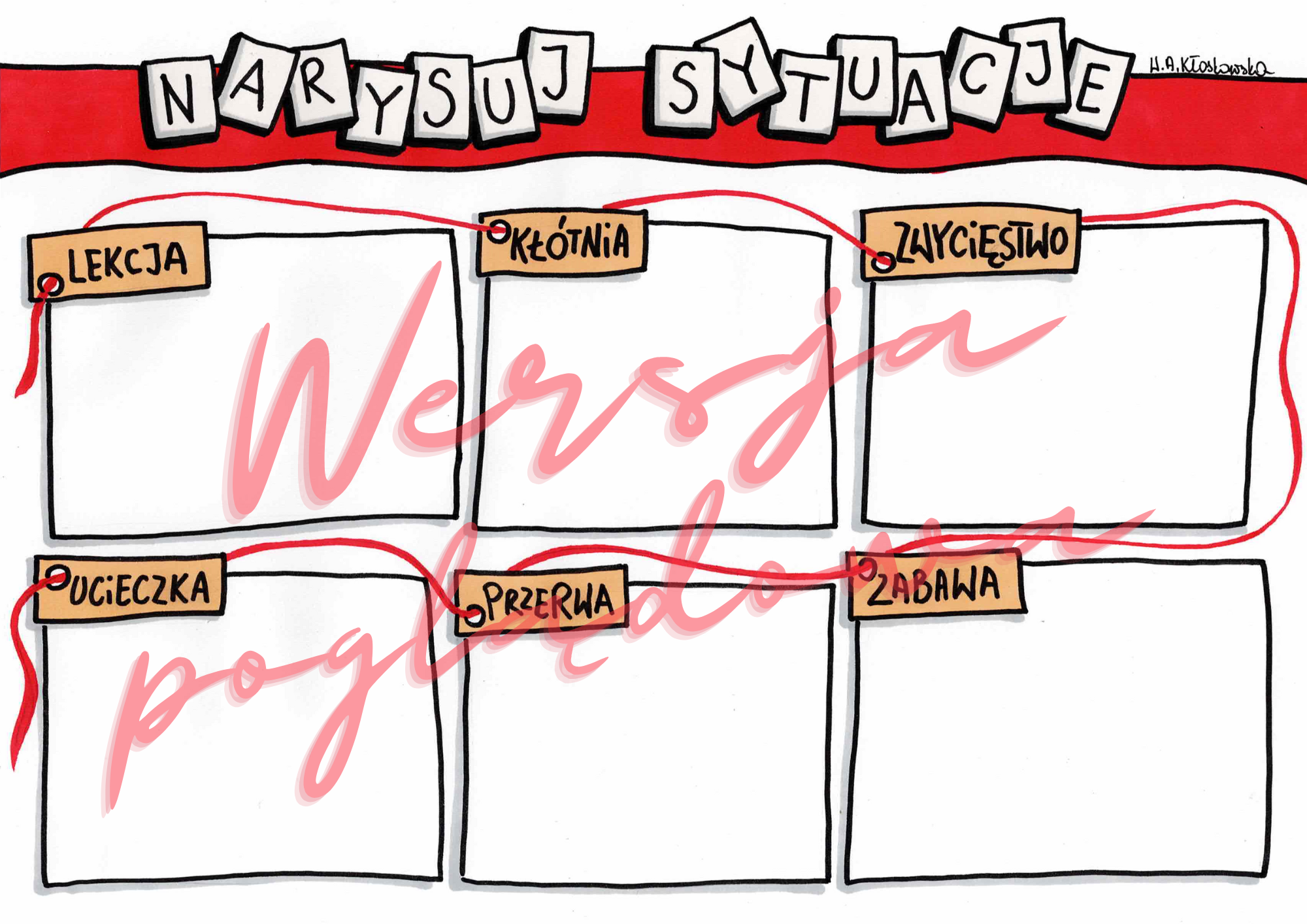 Narysuj sytuacje -karta pracy rozwijająca kreatywność wizualną.