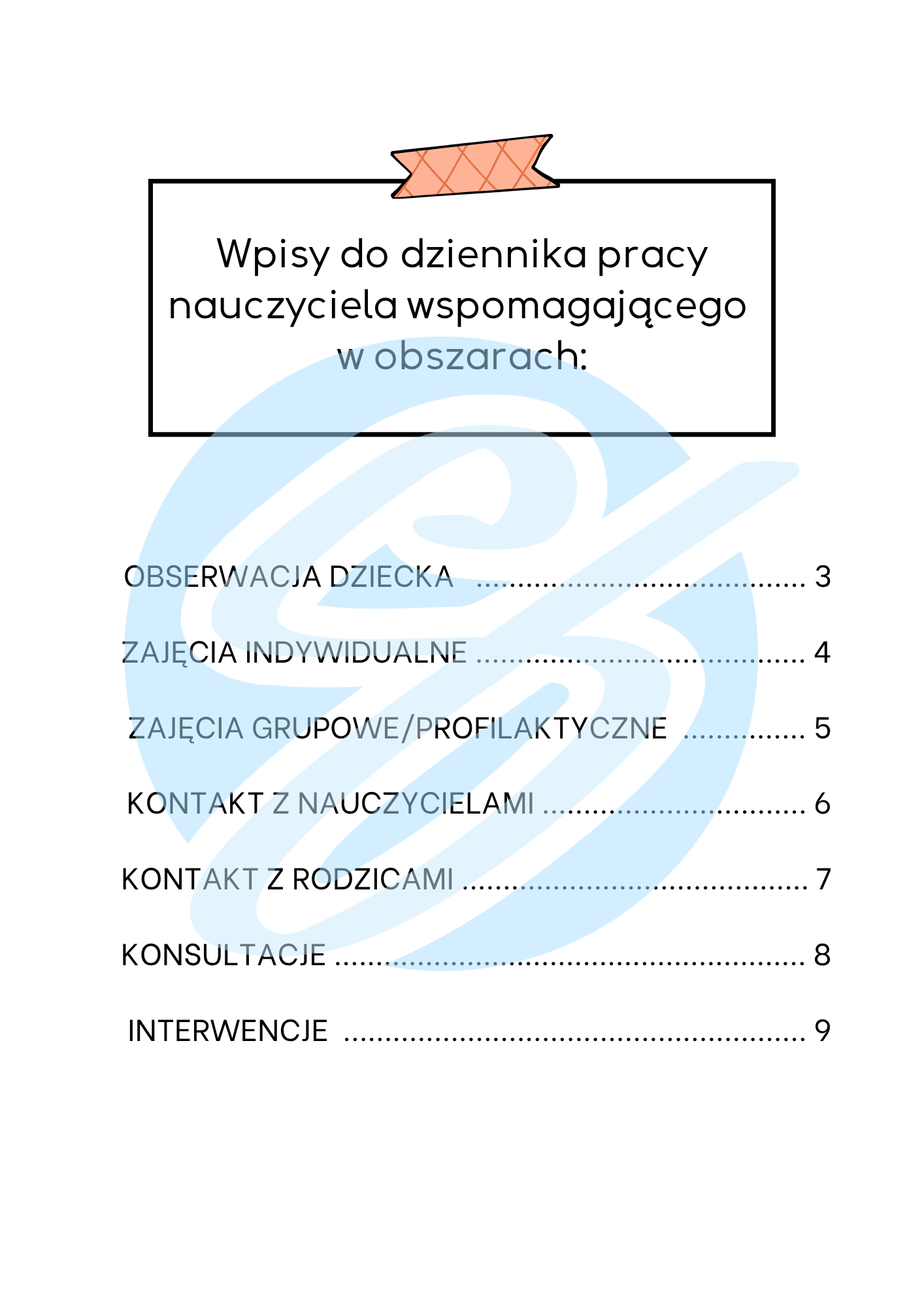 Wpisy zostały podzielone na najważniejsze obszary pracy nauczyciela wspomagającego: