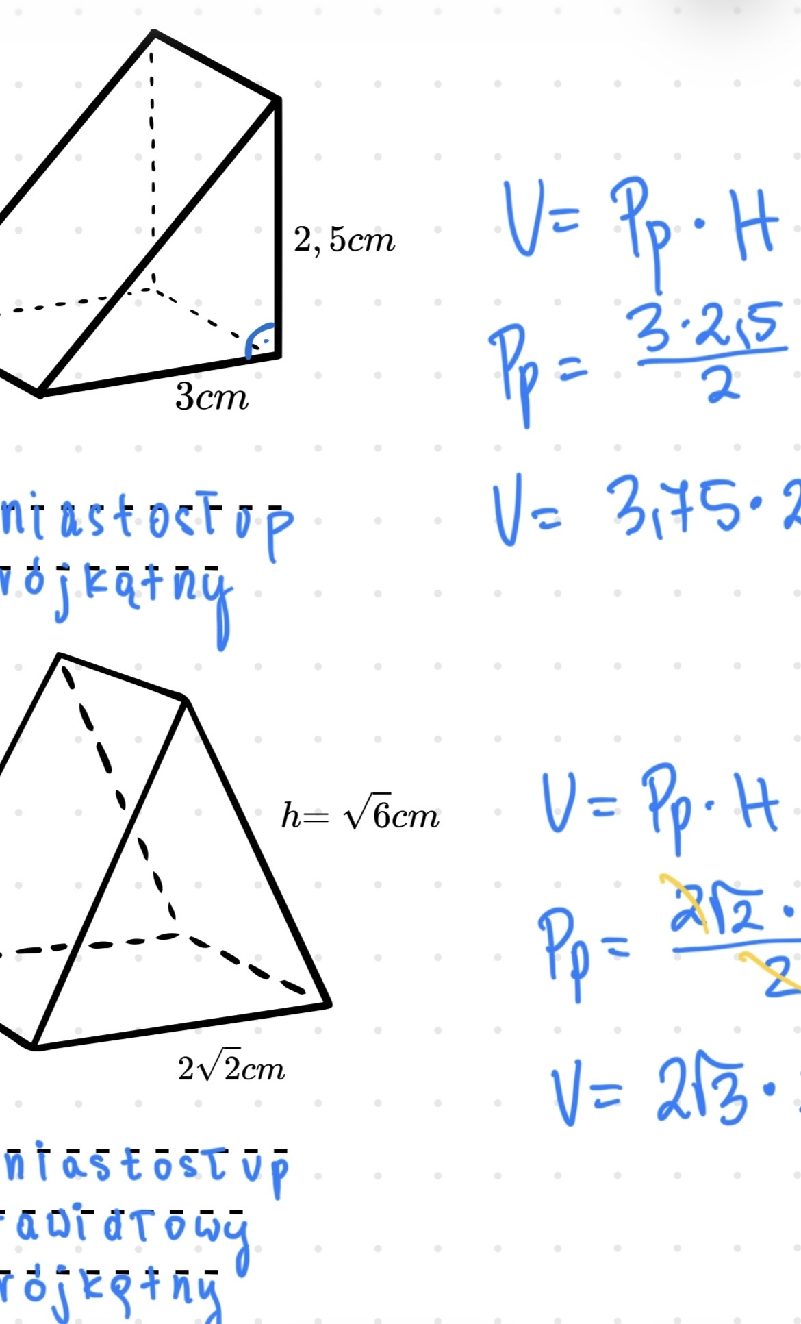 🔹 Bryły z podanymi wysokościami, bokami lub polami podstaw – nie trzeba znać trudnych wzorów, np. na pole sześciokąta foremnego