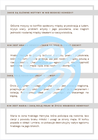 "Nie-Boska komedia" – Gotowy zestaw pytań i odpowiedzi dla nauczycieli szkół średnich
