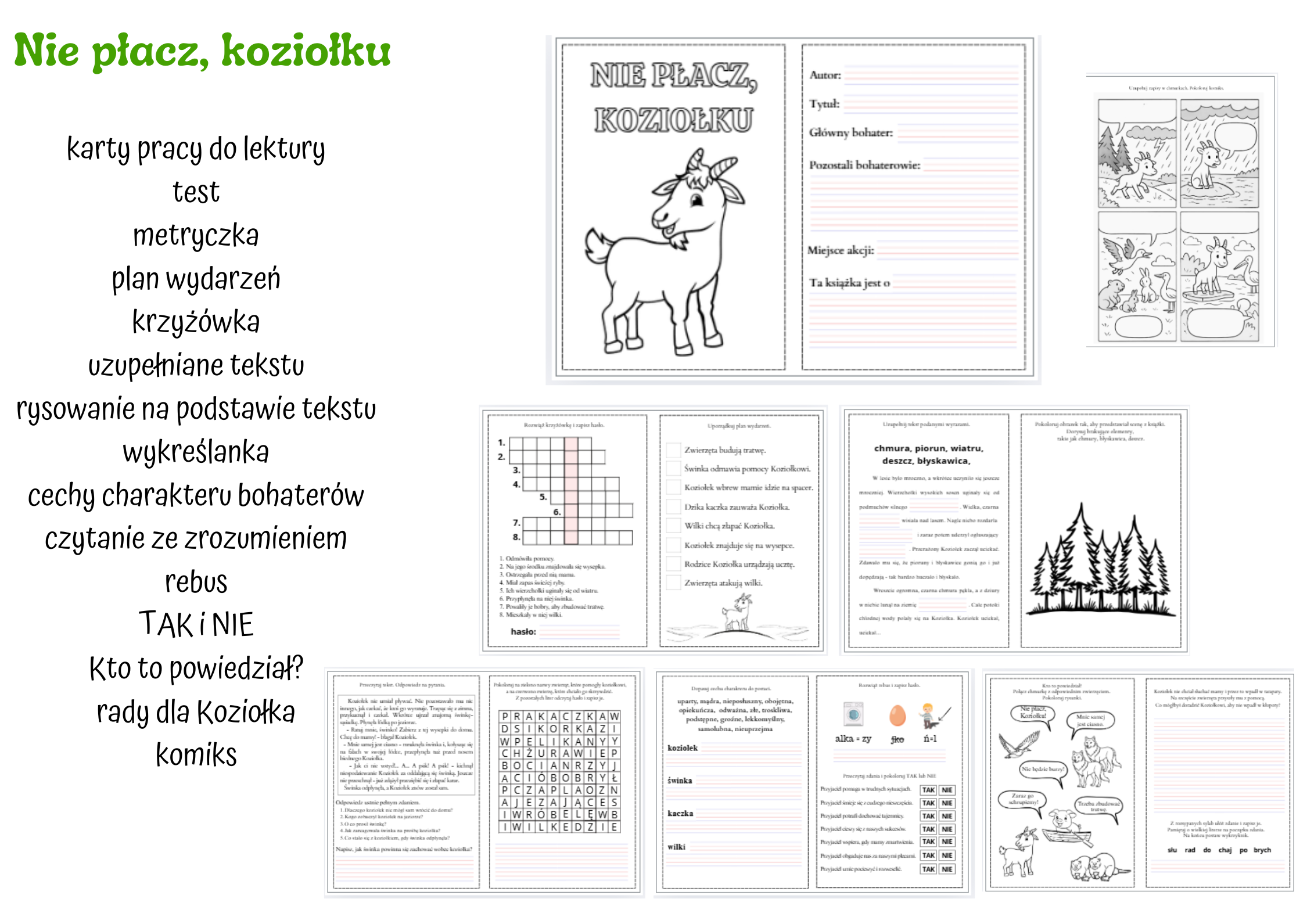 2 karty pracy na A4 (łącznie 12 kart + test + komiks do uzupełniania)