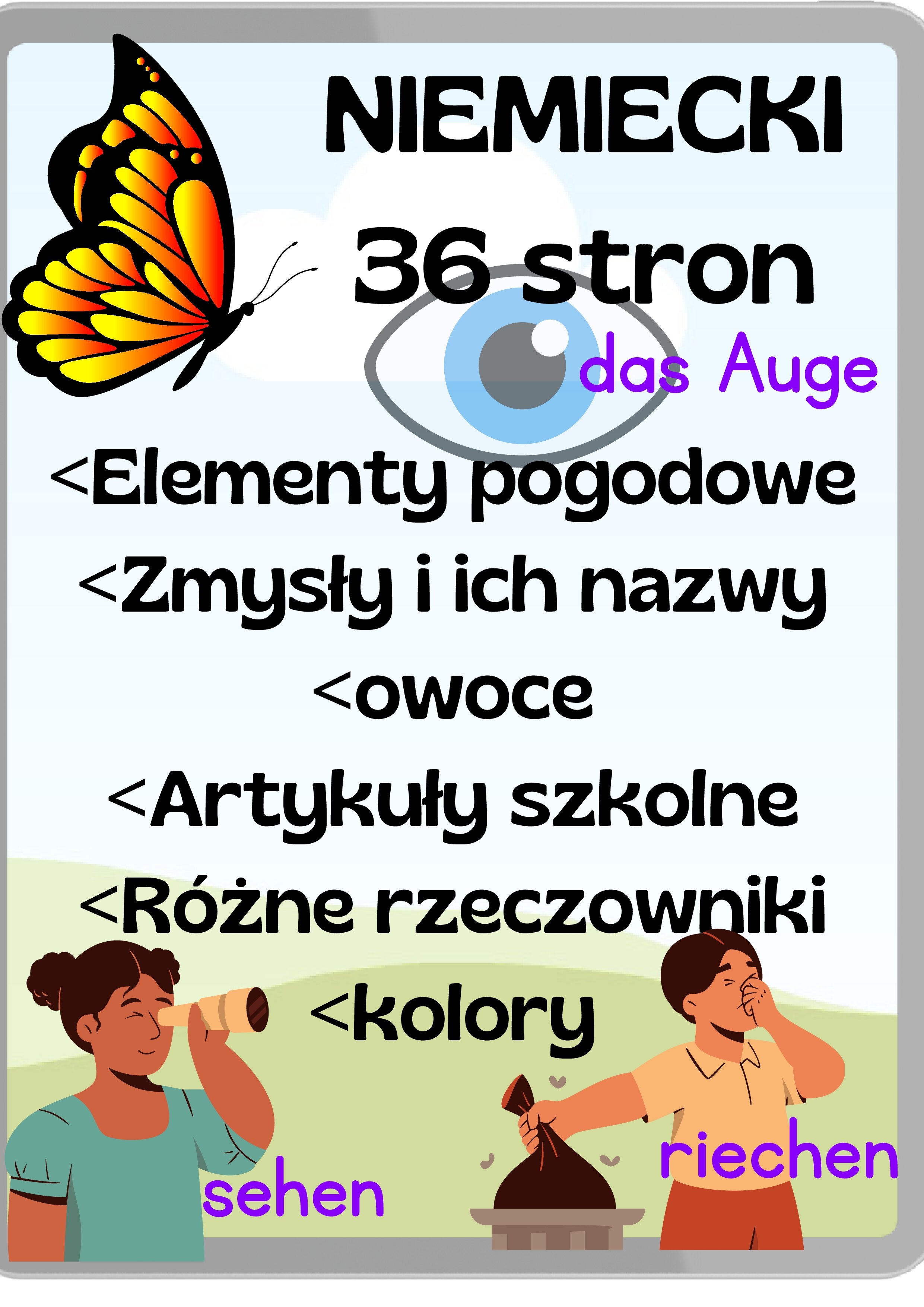 36 kart pracy zawiera zestaw słówek w języku niemieckim, podzielonych na różne kategorie. Można wyróżnić następujące sekcje: