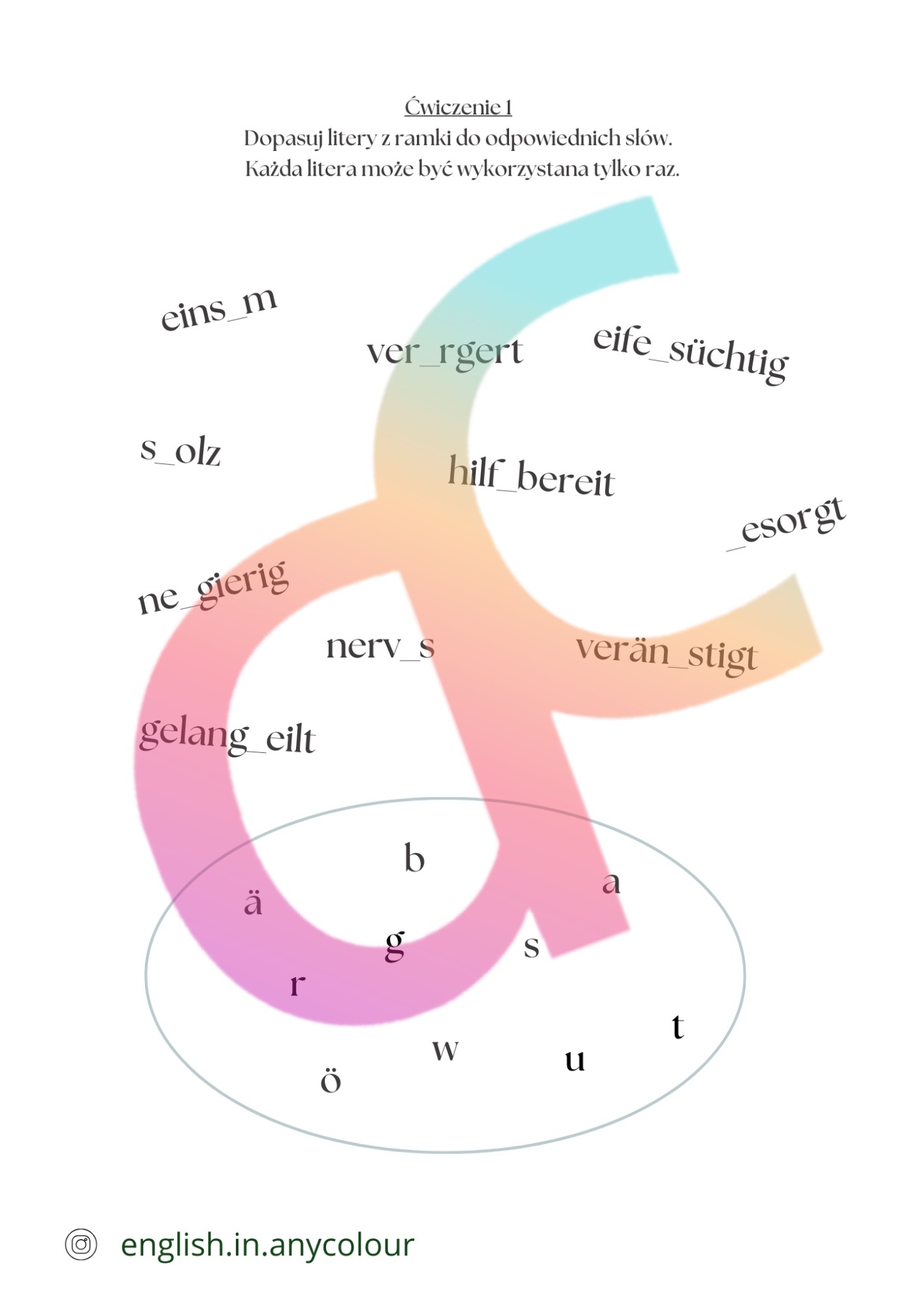 - zestaw 4 ćwiczeń z zakresu nauczanego słownictwa
