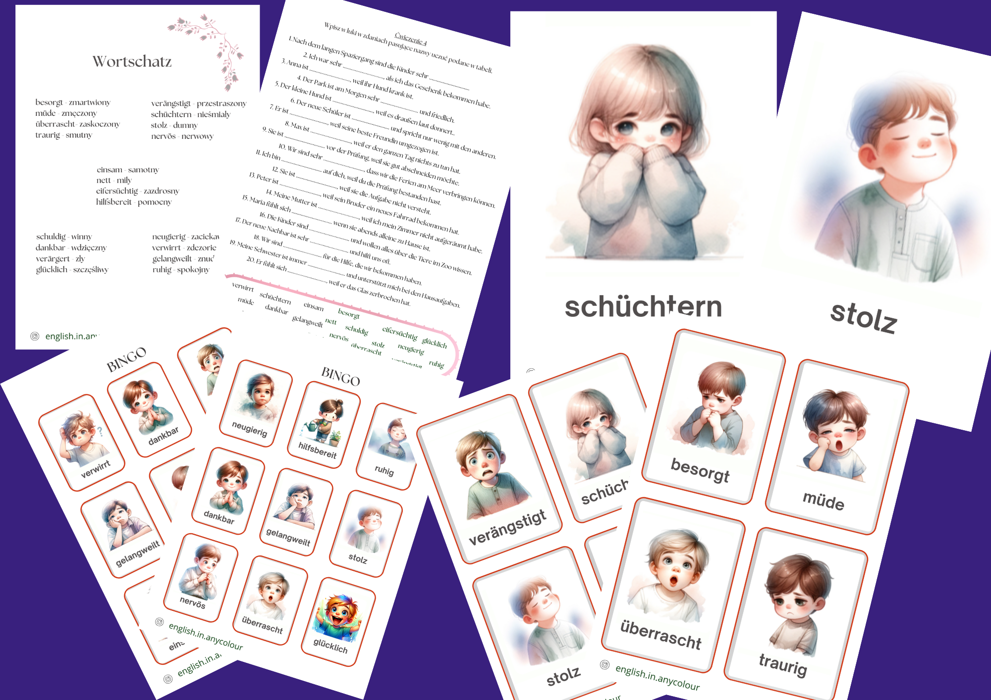 Język Niemiecki - Gefühle - Komplet materiałów do nauczania z zakresu Uczuć