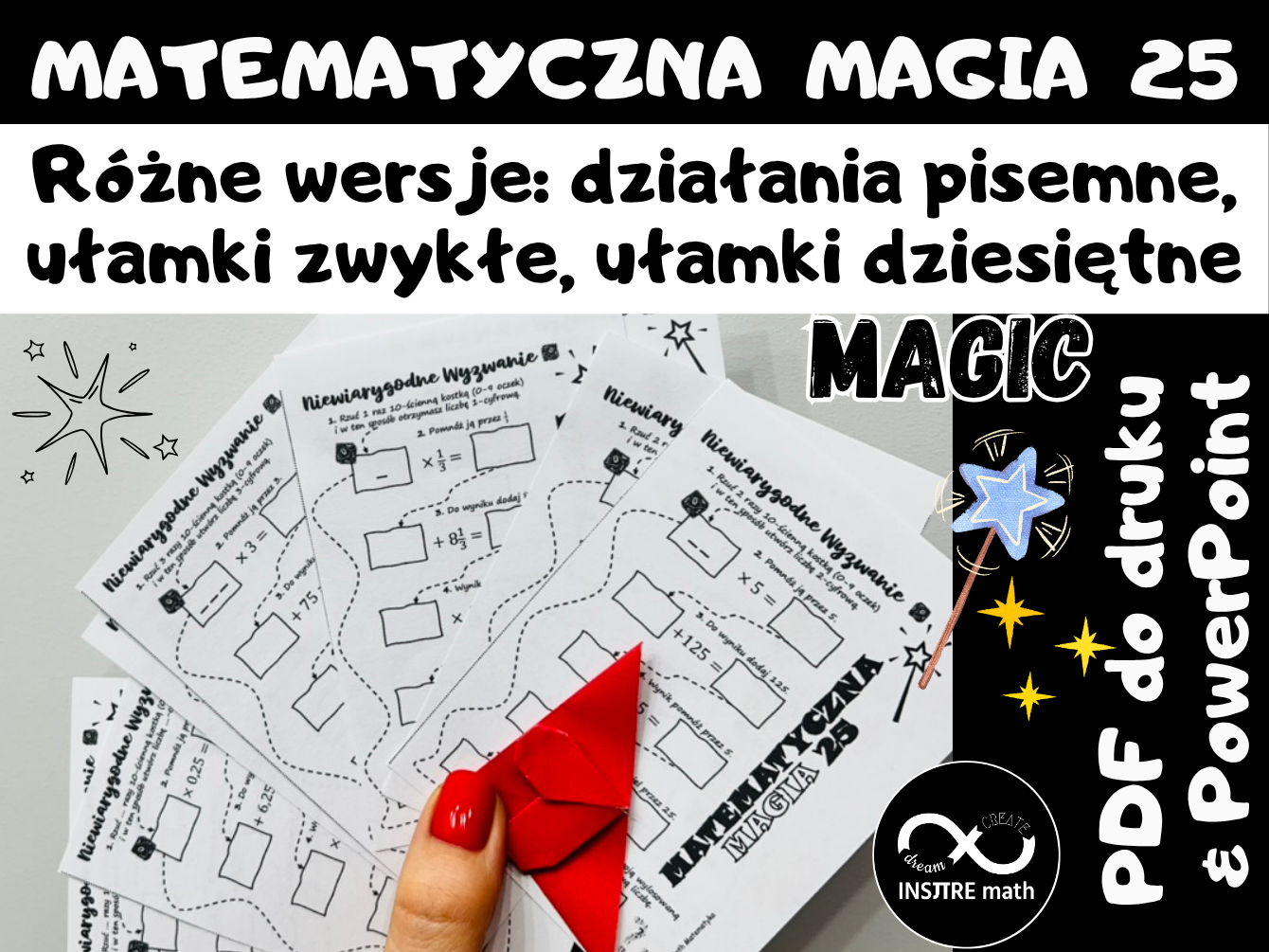 Matematyczna Magia 25 - świetnie nadaje się na czerwcowe lekcje pod koniec roku szkolnego lub wrześniowy powrót do szkoły, ale również w dowolnym czasie w roku. Zaskocz uczniów magią matematyki i pozwól im zostać magikami.