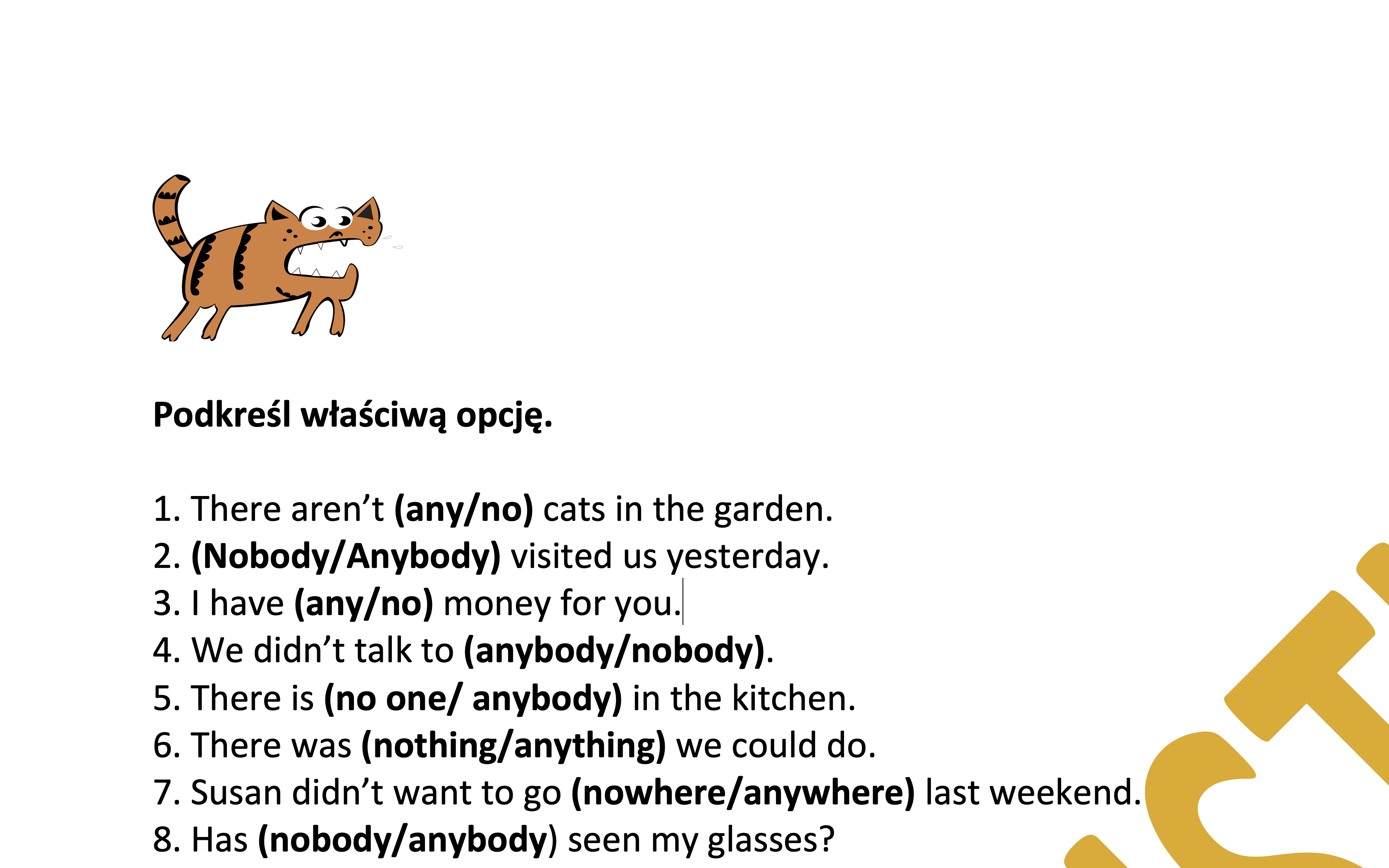 NO.../ ANY....- ćwiczenie utrwalające z kluczem- 20 zdań