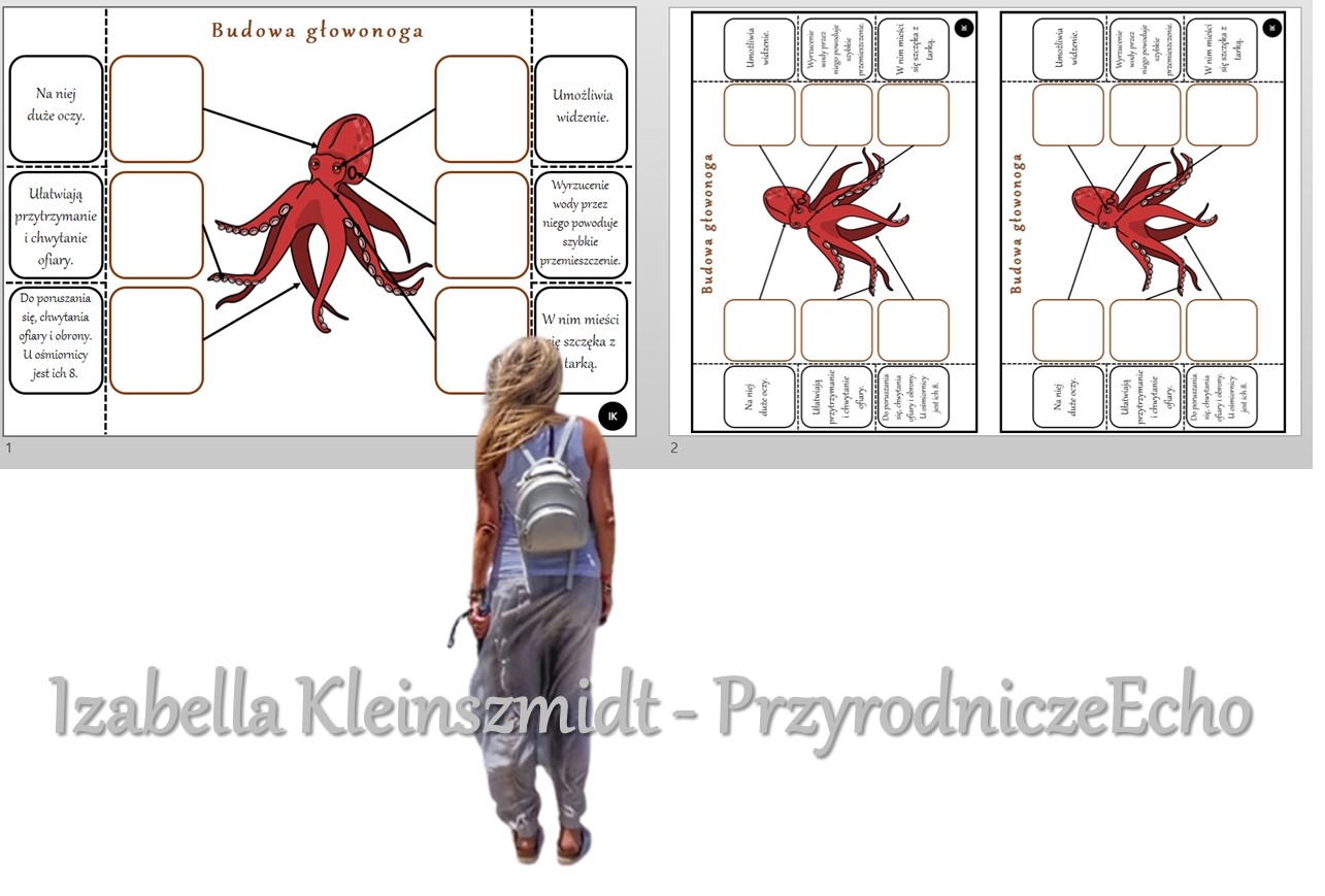 Notatka okienkowa „Budowa ośmiornicy”, „Mięczaki – zwierzęta, które mają miękkie ciało”. Biologia 6 „Stawonogi i mięczaki”.