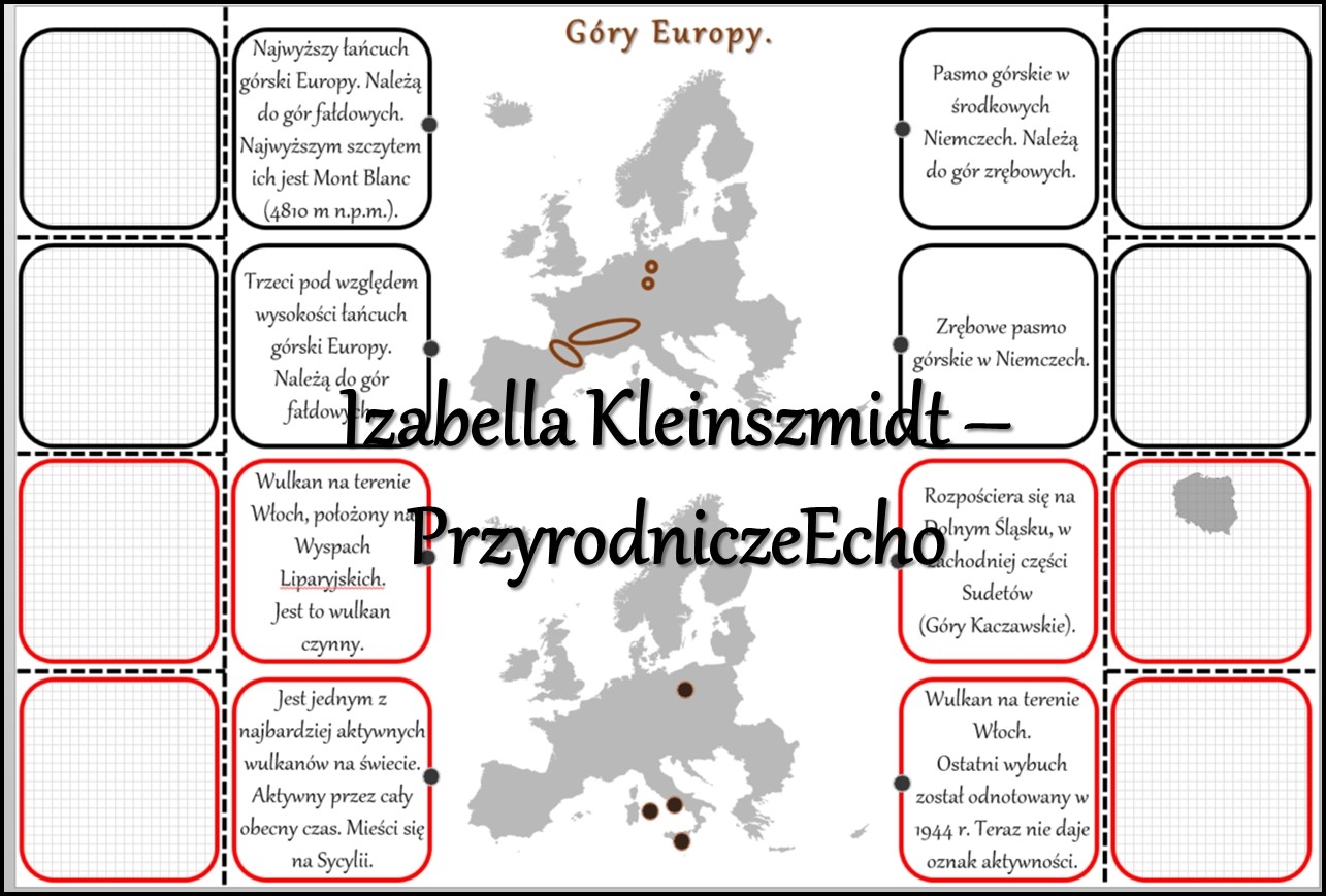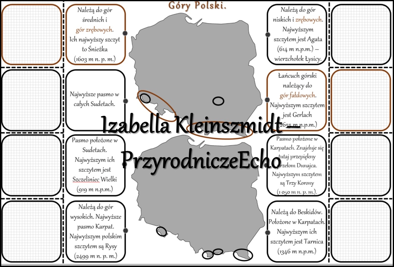 Notatka okienkowa/stacja zadaniowe/notatka interaktywna/notatka graficzna/karta pracy/sketchnotka „Góry 1Polski i Europy” , „Położenie gór na mapie Polski i Europy” w pdf do SP. Geografia 7 , dział „Środowisko przyrodnicze Polski”. Materiał wykonany na p