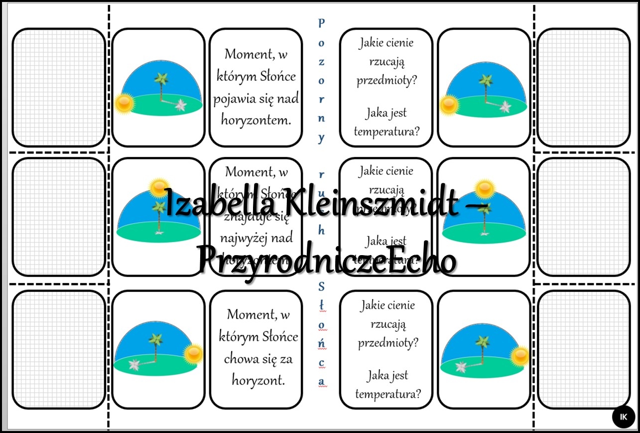 Notatka okienkowa/stacja zadaniowe/notatka interaktywna/notatka graficzna/karta pracy/sketchnotka „Pozorny ruch Słońca po niebie” w pdf. Przyroda 4, Geografia 6 , dział „Ruchy Ziemi”. Materiał wykonany na podstawie podręcznika z wydawnictwa Nowa Era – no