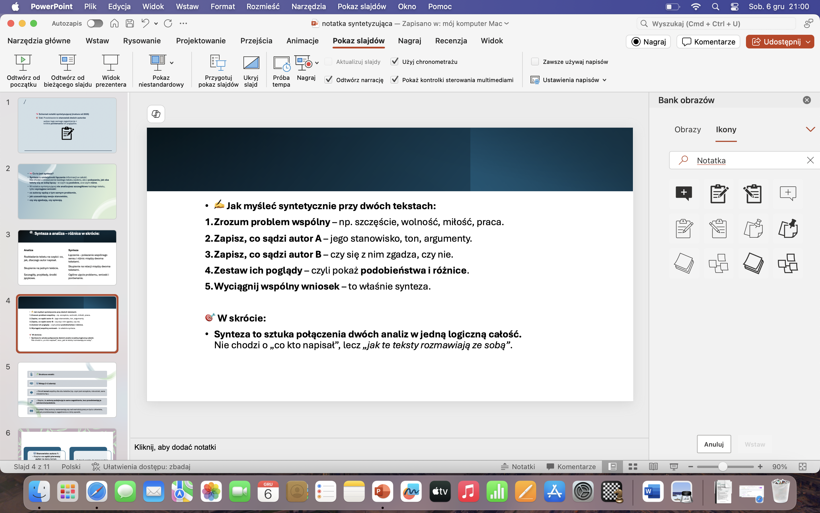 Praktyczna prezentacja w formacie PowerPoint, która w prosty i uporządkowany sposób wyjaśnia, jak napisać notatkę syntetyzującą zgodnie z wymaganiami nowej matury od 2025 roku.