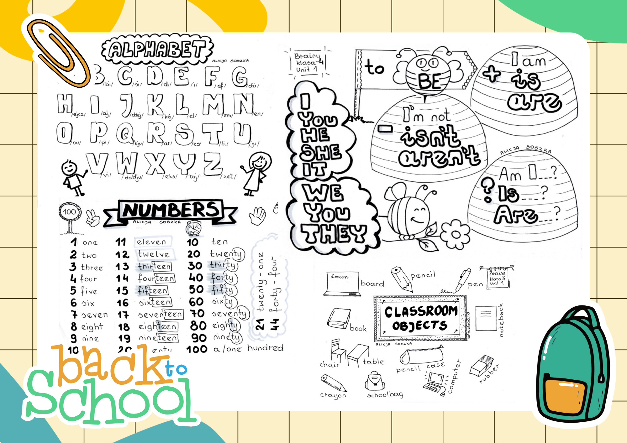Zbiór notatek wizualnych dla uczniów klasy czwartej z języka angielskiego.