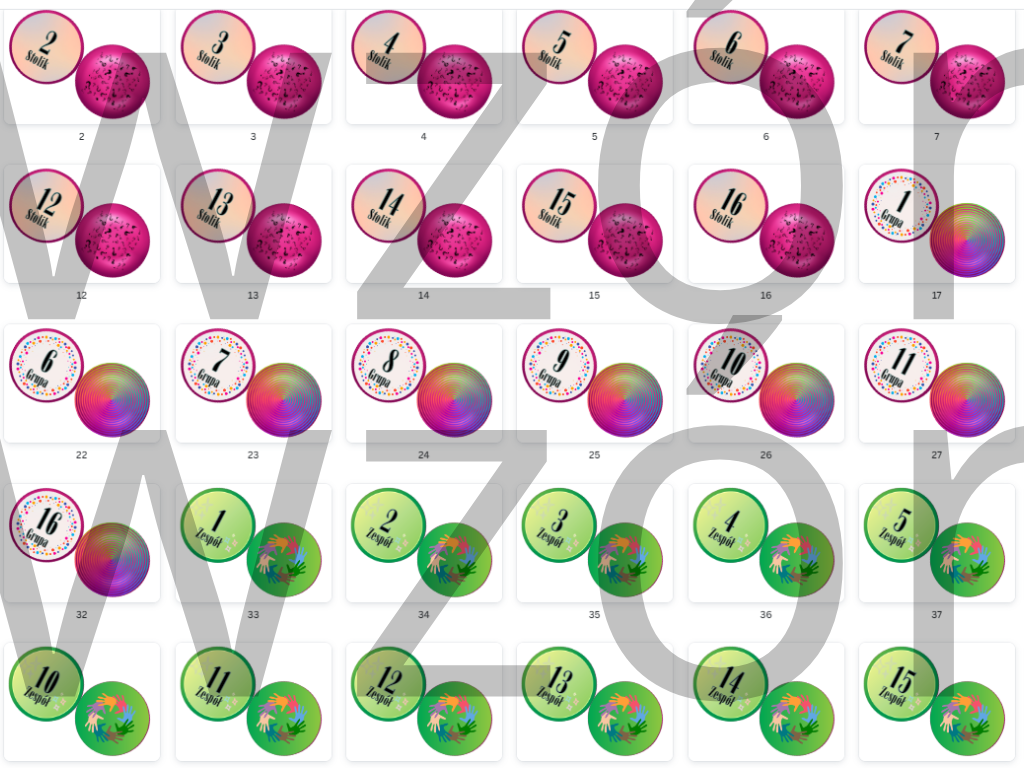 - 16 x plansze A4 z numerami grup (od 1 - do 16)