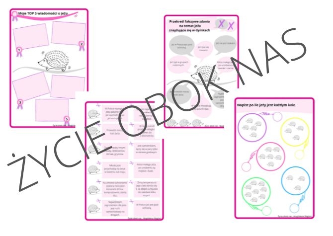 Sprawdzą się jako: przedstawienie informacji o jeżu, wybraniu przez każdego z uczestników zajęć 5 ciekawostek o jeżu, utrwalenie treści, zwrócenie uwagi na potrzeby jeży, . Można je wykorzystać jako dodatkową pracę domową.