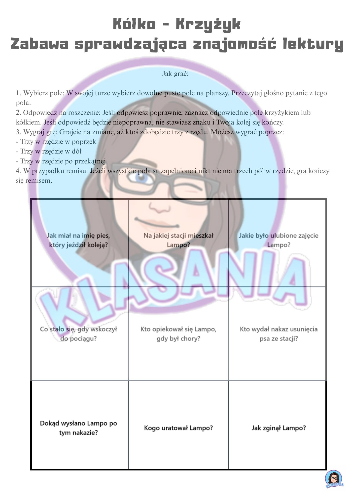 ✅ Kółko i krzyżyk – quiz sprawdzający znajomość lektury.