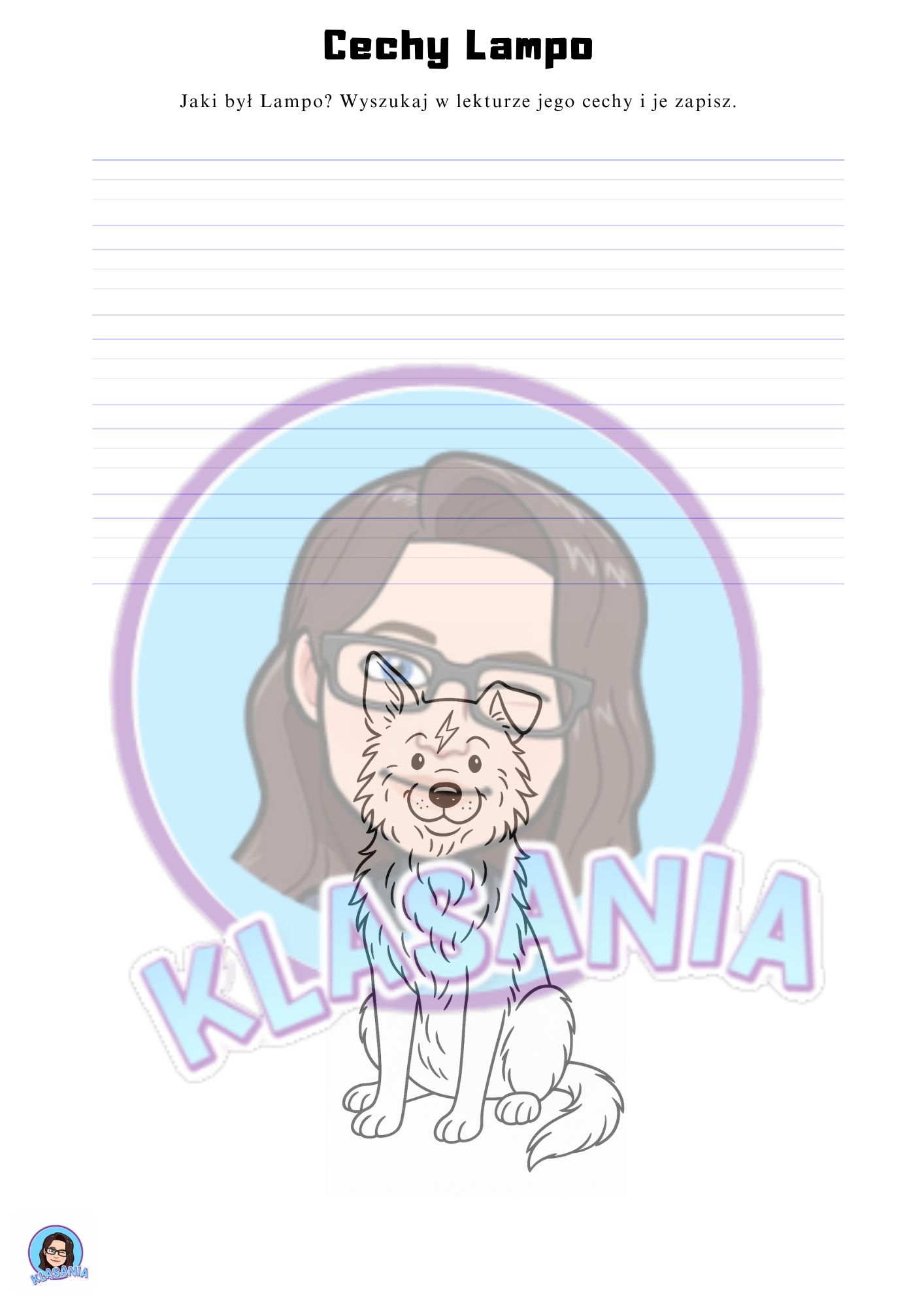 ✅ Opis bohatera – przygotowanie do charakterystyki Lampo z pytaniami pomocniczymi.