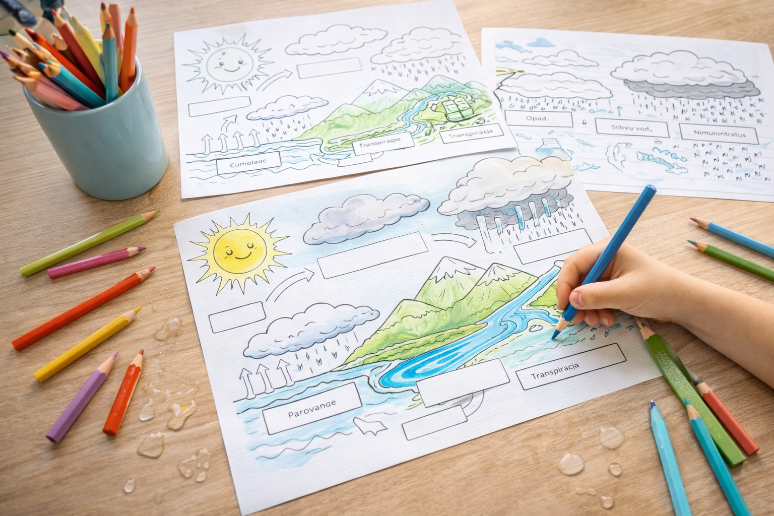 Obieg wody w przyrodzie – karty pracy i mini-eksperymenty
