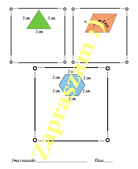 Obliczanie pól wielokątów - karta pracy lub kartkówka