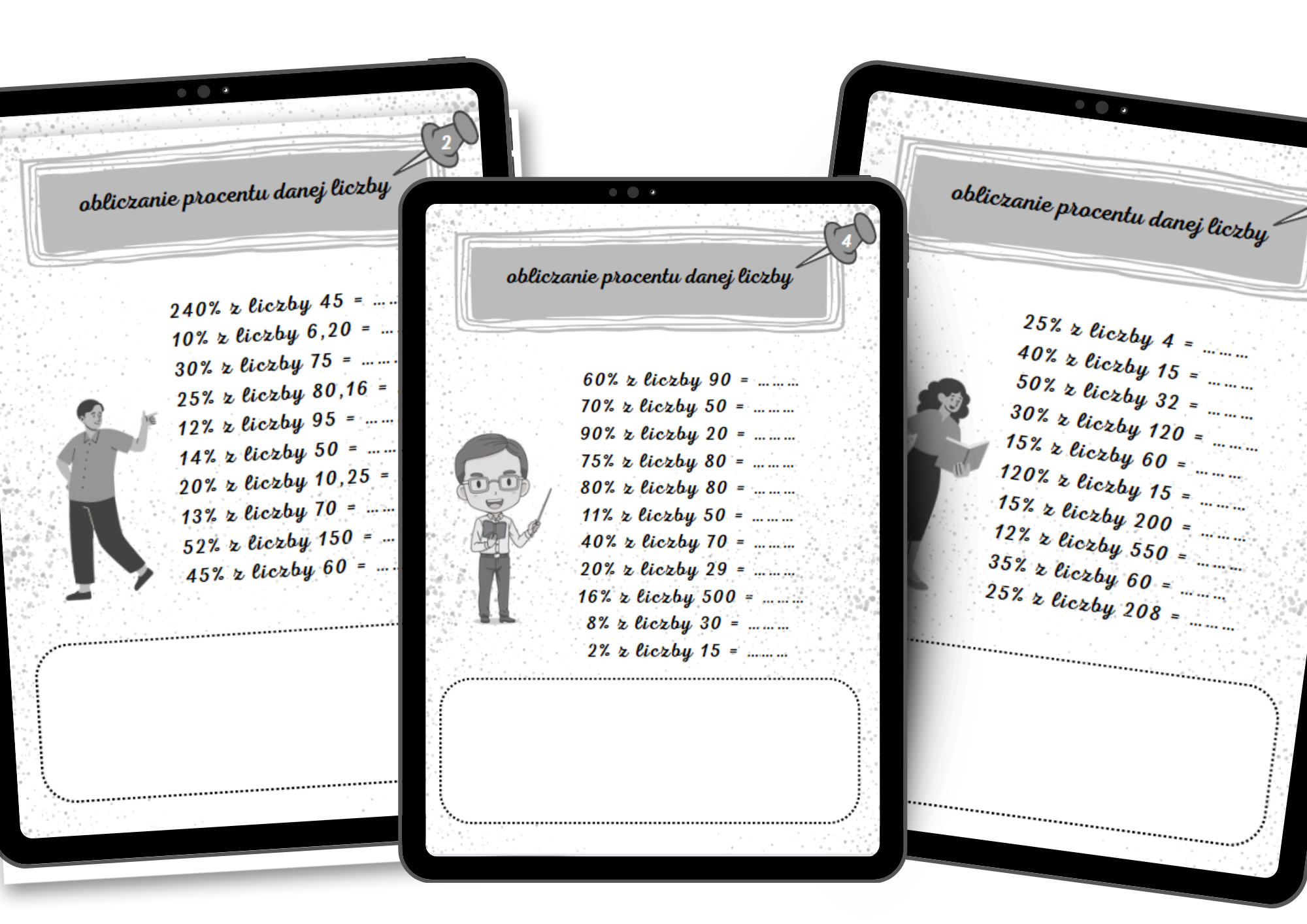 Karty pracy do wydruku dotyczące obliczania procentu danej liczby.