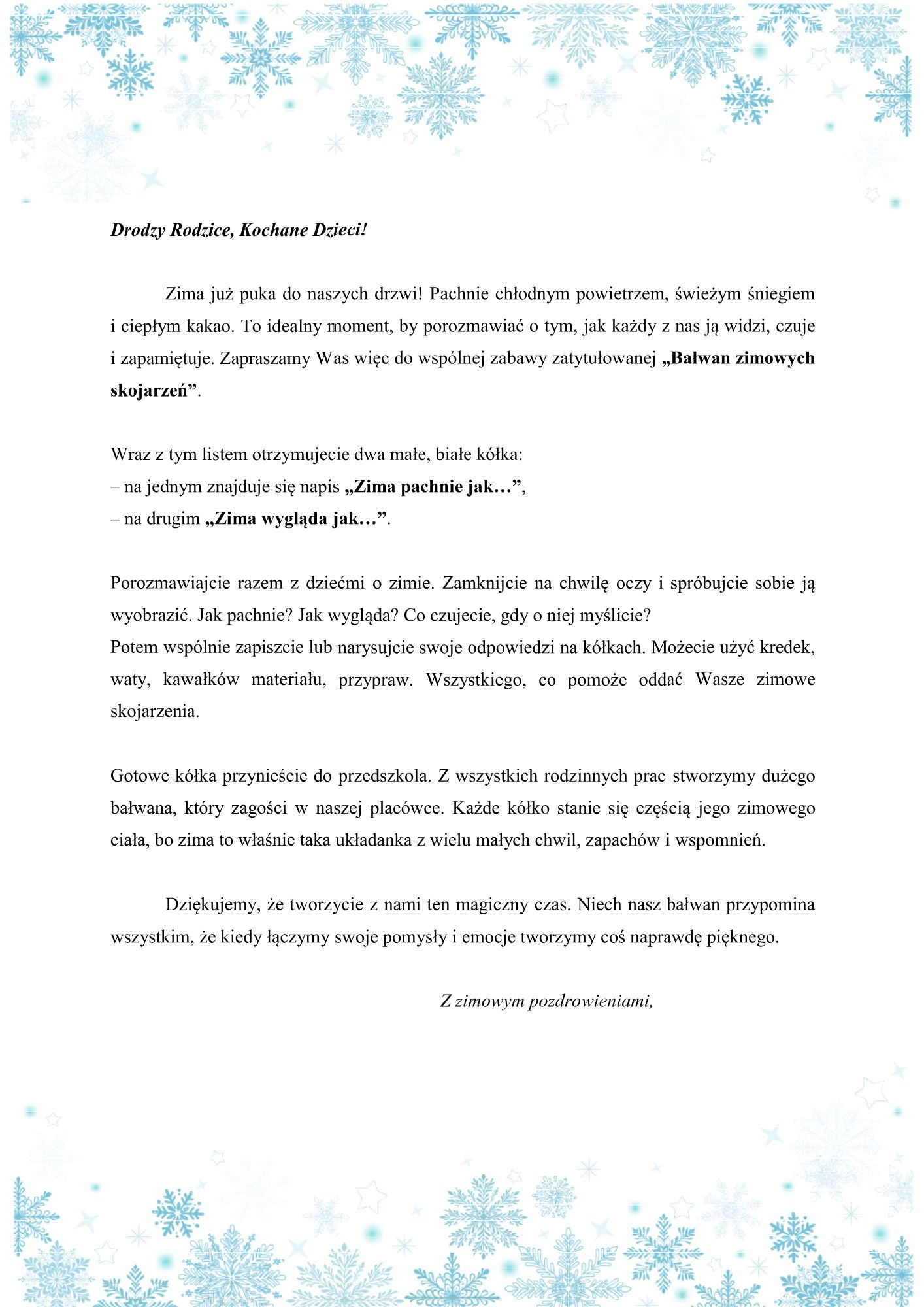 Projekt pozwala dzieciom krok po kroku odkrywać przemiany zachodzące w naturze – od jesiennych liści po zimowe śnieżynki. Każde zadanie rozwija uważność, ciekawość i umiejętność dostrzegania piękna w codziennych zjawiskach.
