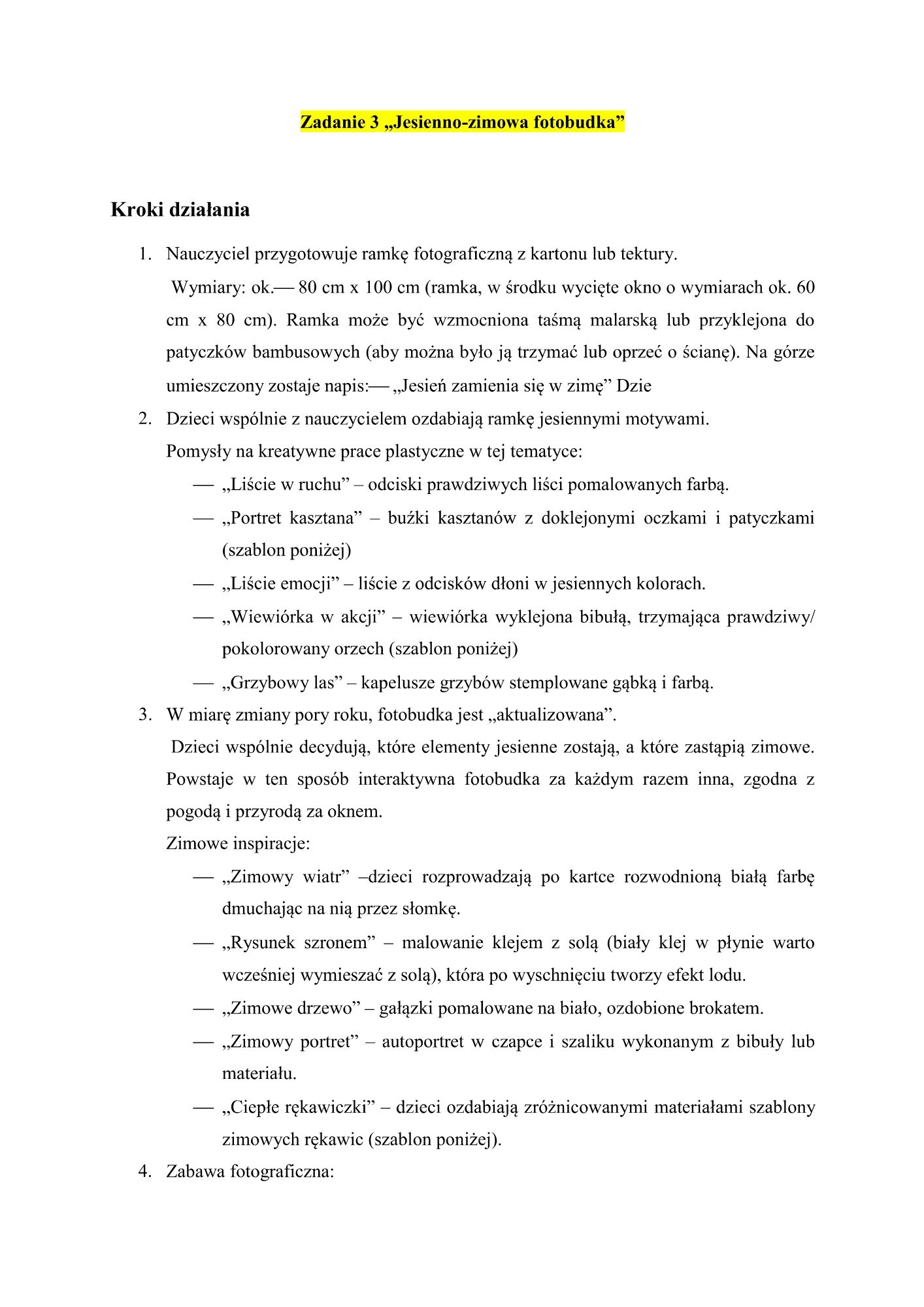 - Materiały do realizacji zadań – karty, wzory i pomoce gotowe do wykorzystania przez nauczyciela.
