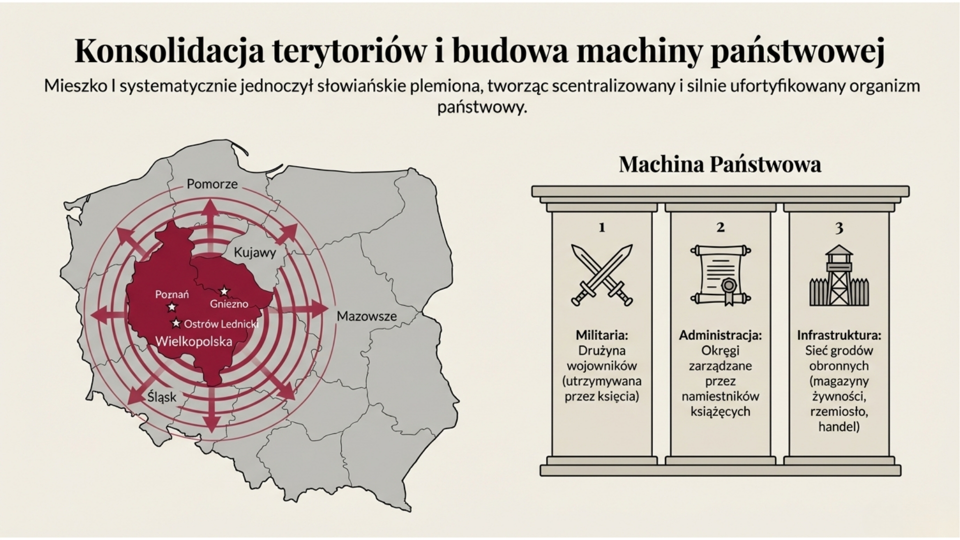 To nie jest kolejny zestaw zakurzonych dat. To fascynująca opowieść o budowaniu „projektu Polska” od zera. Przygotowałem materiał, który mówi językiem dzisiejszych dziesięciolatków, porównując działania Mieszka do budowania potężnego sojuszu w grze strategicznej.