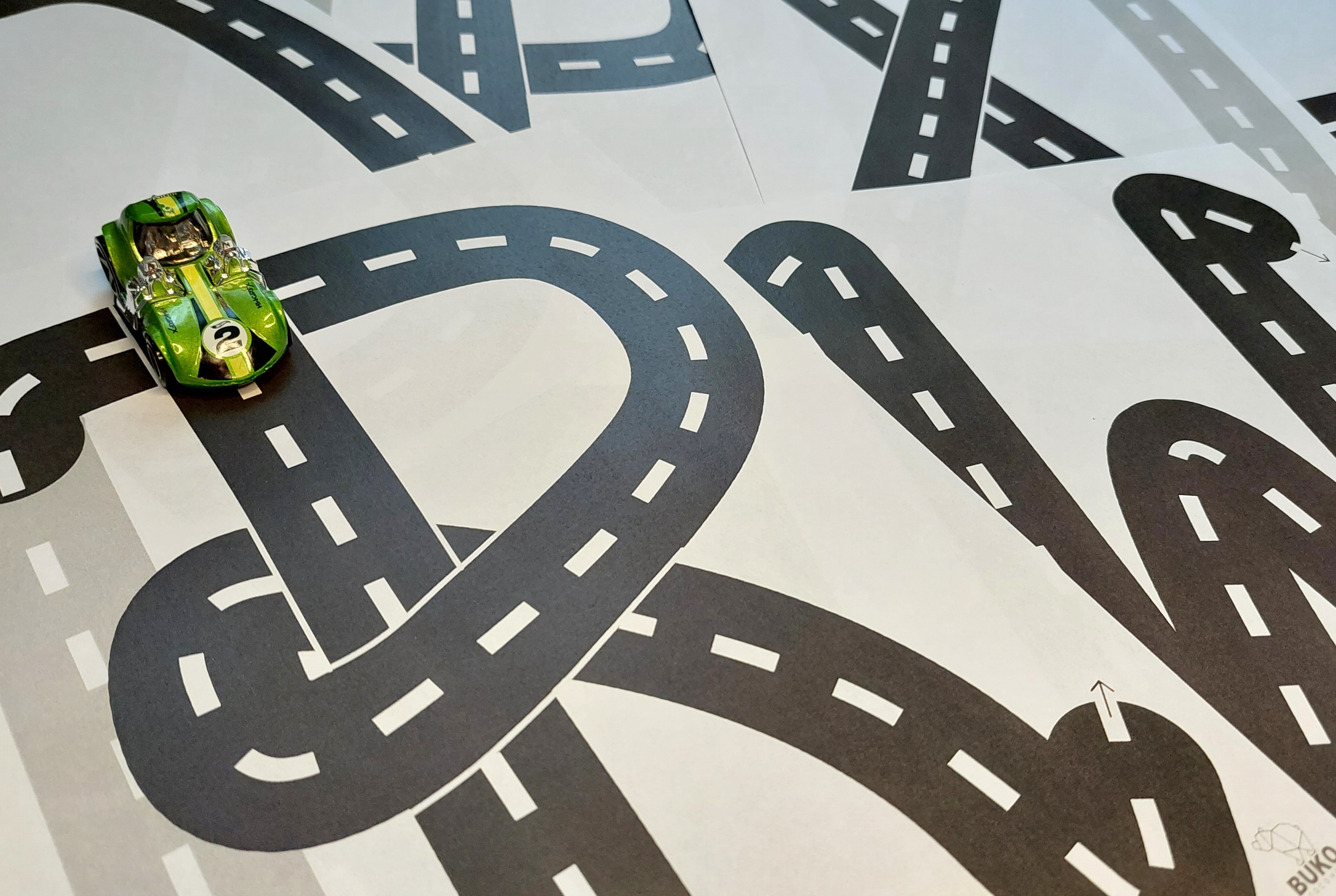 Zestaw zawiera również autka z dziurką do wycięcia, gdzie zahaczamy długopis i autko "jedzie" prowadzone przez chwyt pisarski.