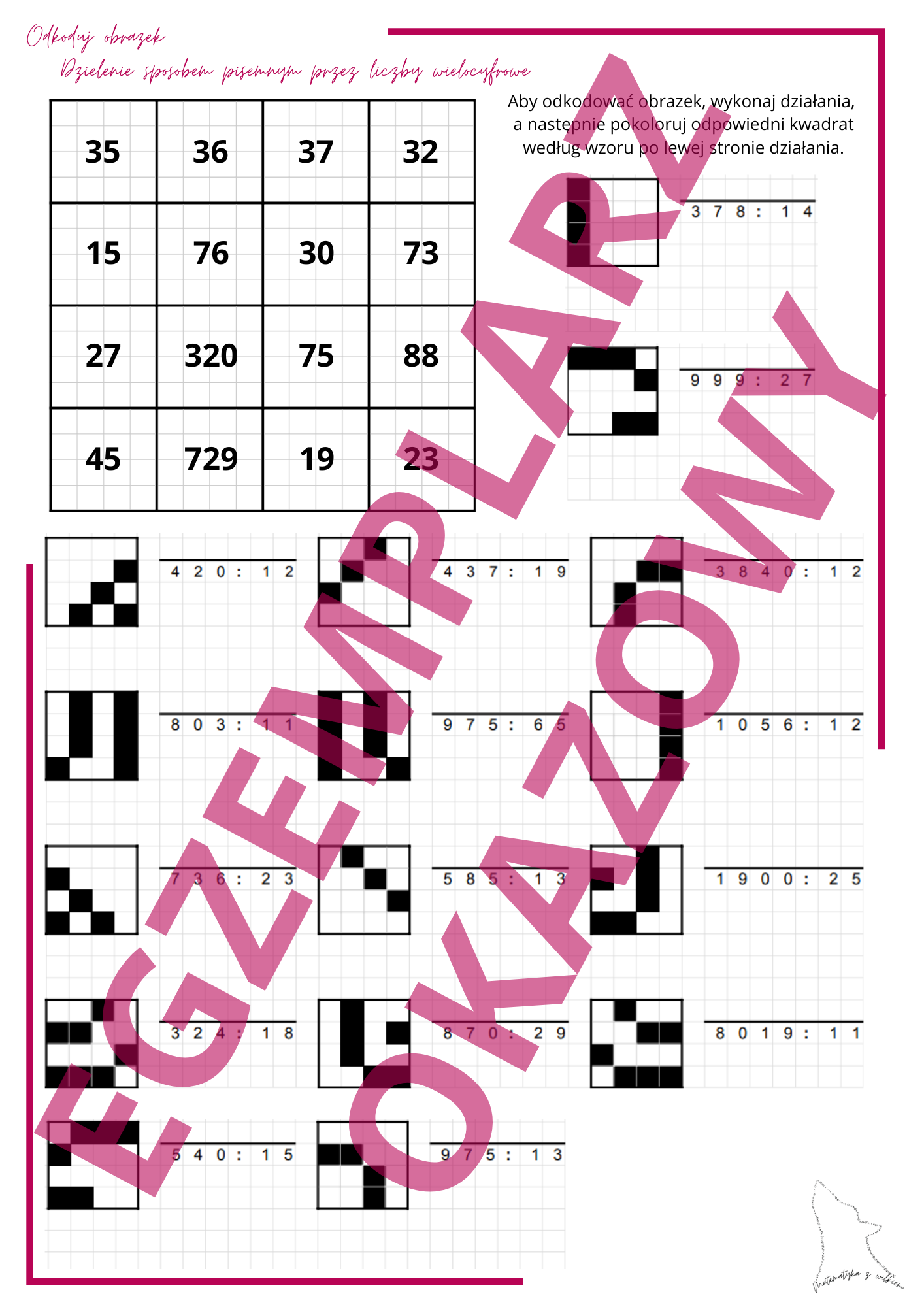 Odkoduj obrazek - dzielenie sposobem pisemnym przez liczby wielocyfrowe