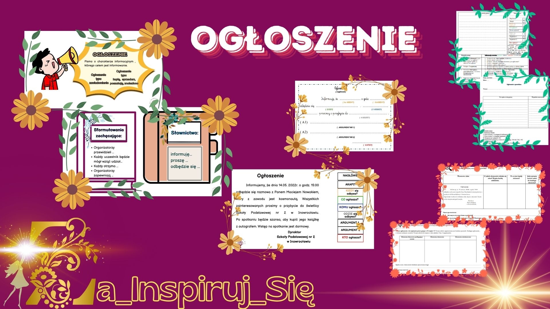 Wyobraź sobie, że Twoi uczniowie piszą ogłoszenia z łatwością, znając wszystkie kluczowe elementy i zasady. Opracowany materiał dostarcza kompleksowych informacji, od podstawowych definicji, przez szczegółowe omówienie struktury, aż po przykłady wzorcowych ogłoszeń.