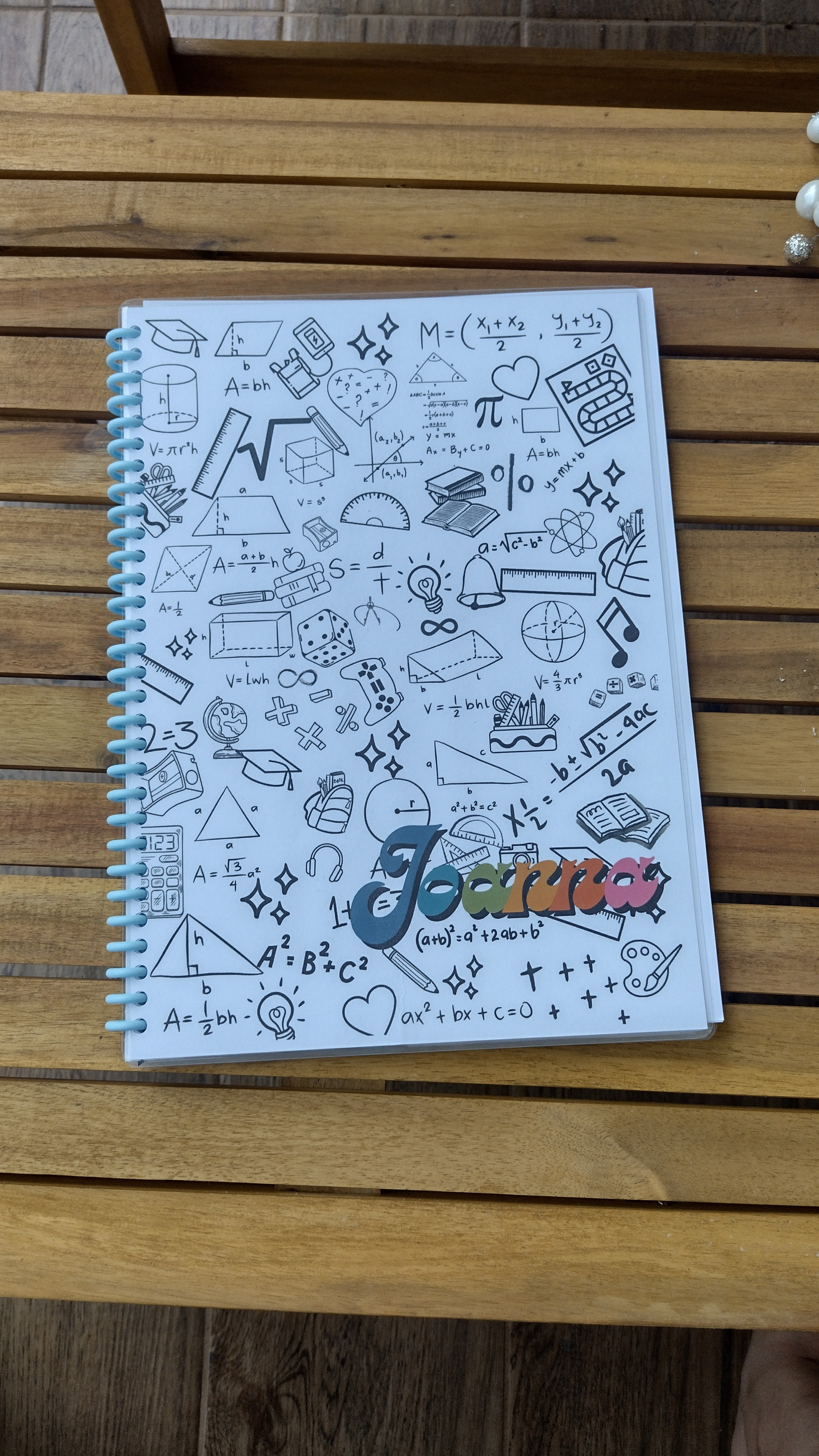 Masz do wyboru 12 różnych wersji okładek - w tym sekcję planowanie lekcji, notatki, kontakty z rodzicami. W tym moją autorską grafikę matematyczną (oczywiście zamiast napisu Joanna na okładce jest rok szkolny 2024-2025).