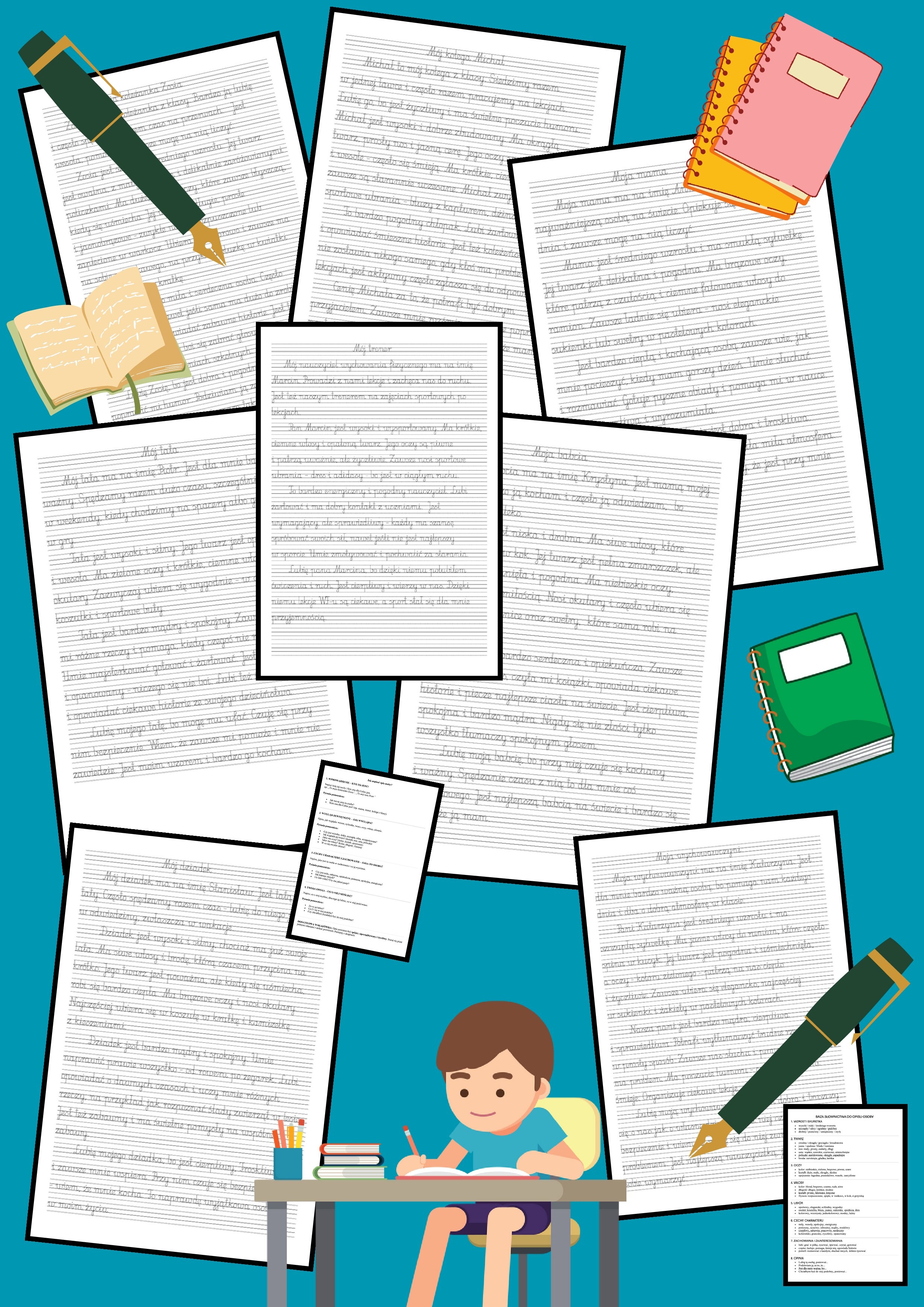 • Instrukcję „Jak napisać opis osoby” – przejrzysta ściąga krok po kroku z pytaniami pomocniczymi