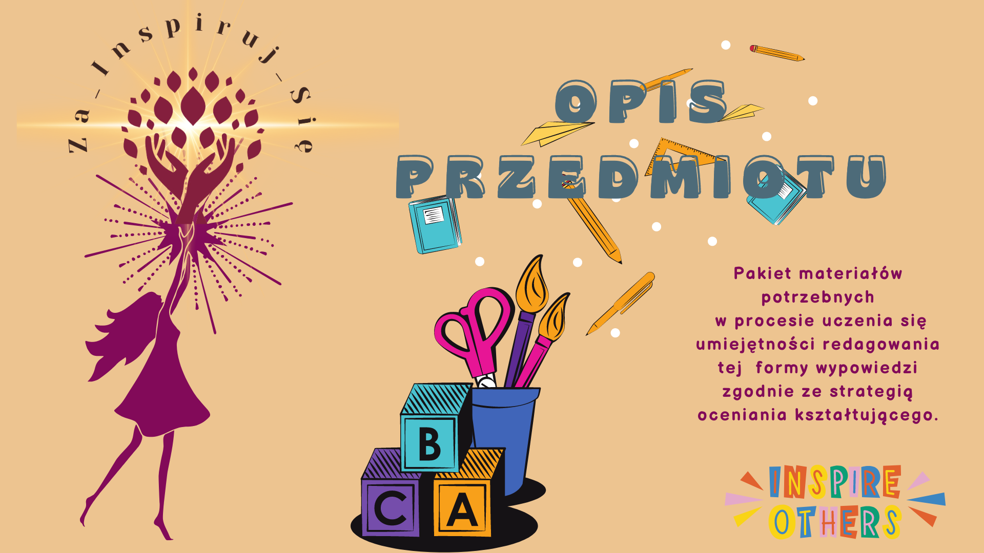Pakiet materiałów edukacyjnych, który został stworzony specjalnie z myślą o nauczycielach pragnących rozwijać umiejętności redagowania opisu przedmiotu u swoich uczniów, którym brakuje czasu lub pomysłów, żeby coś przygotować samemu.