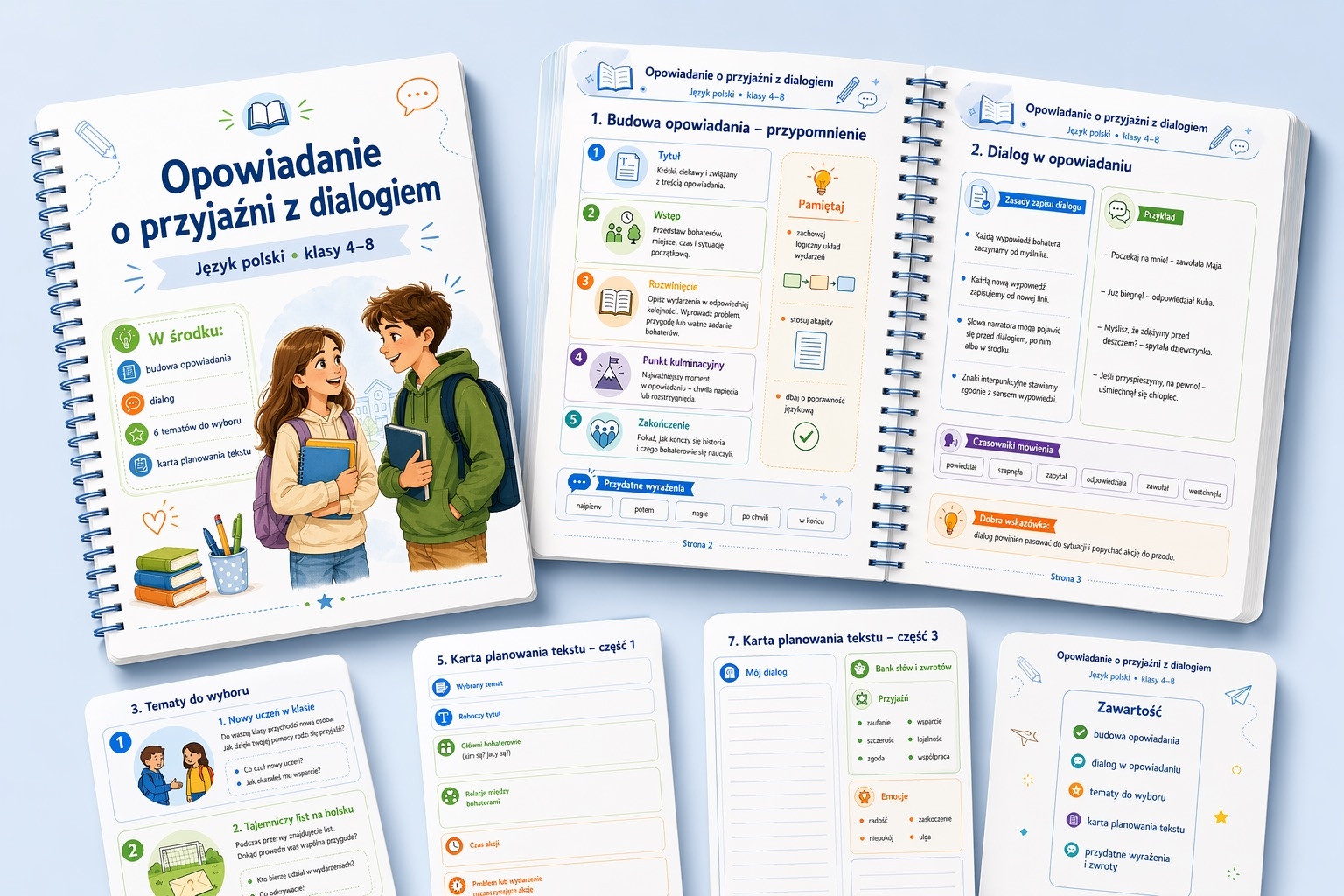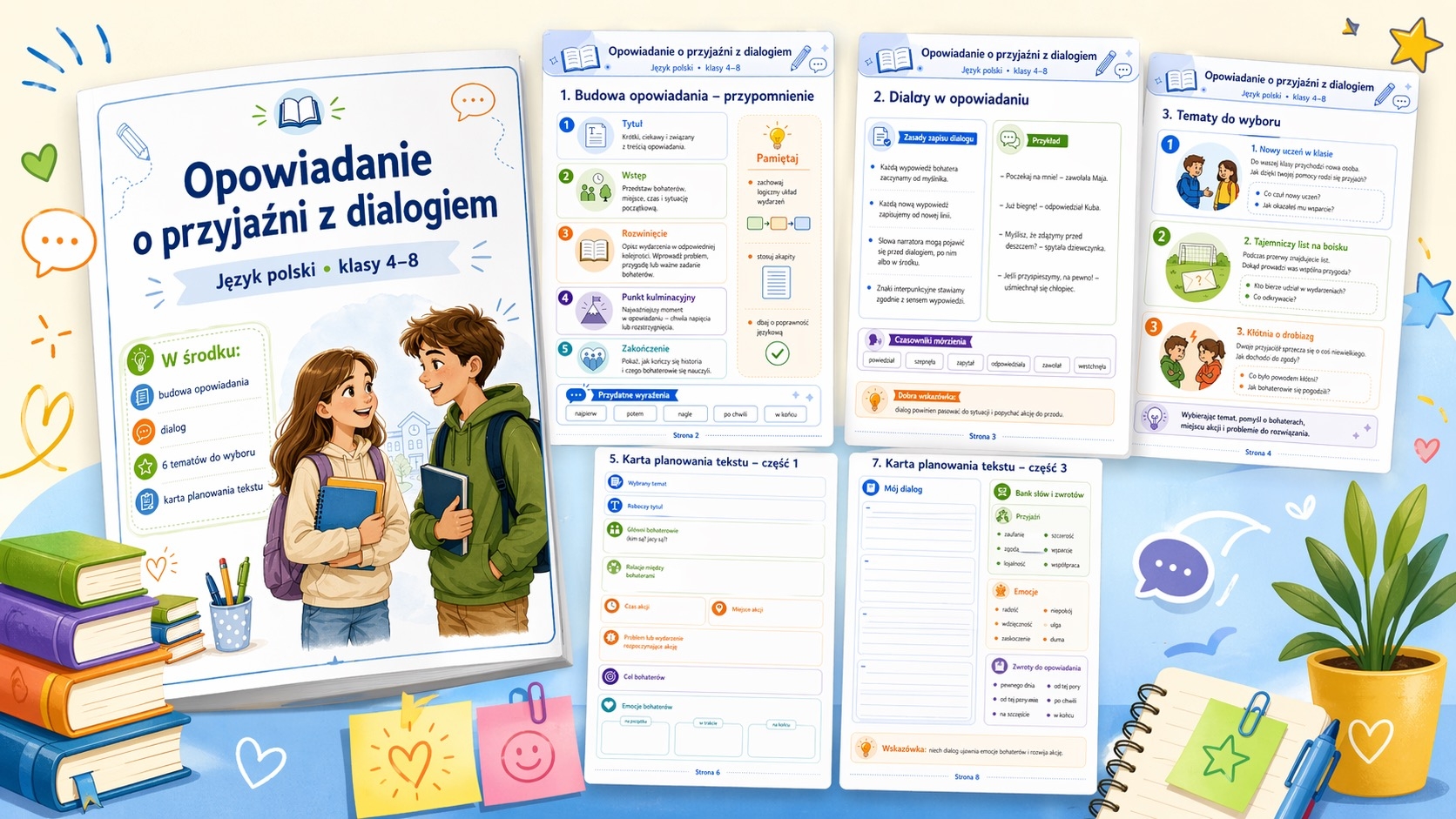 „Opowiadanie o przyjaźni z dialogiem” to gotowy materiał do pracy na języku polskim dla uczniów klas 4–8 📚✍️
