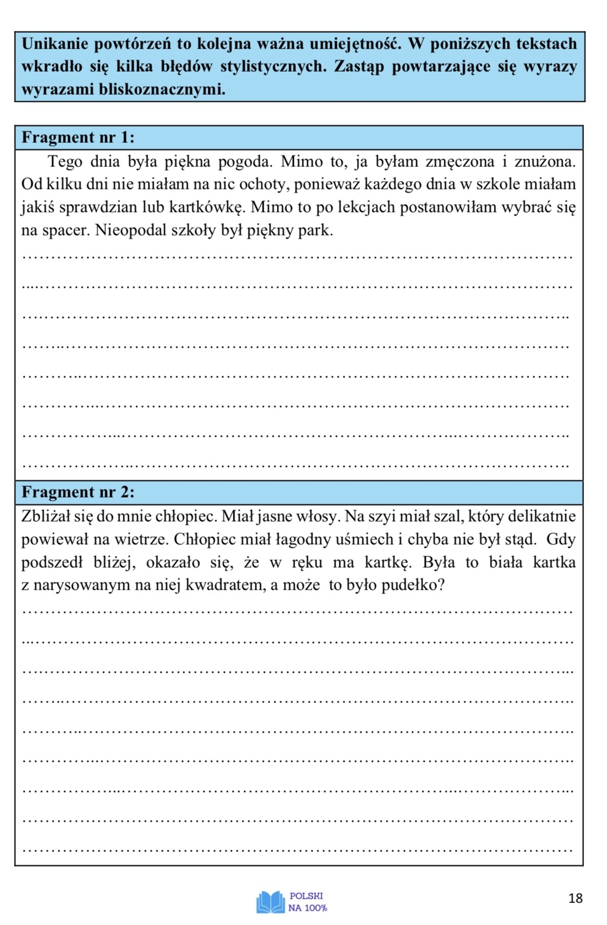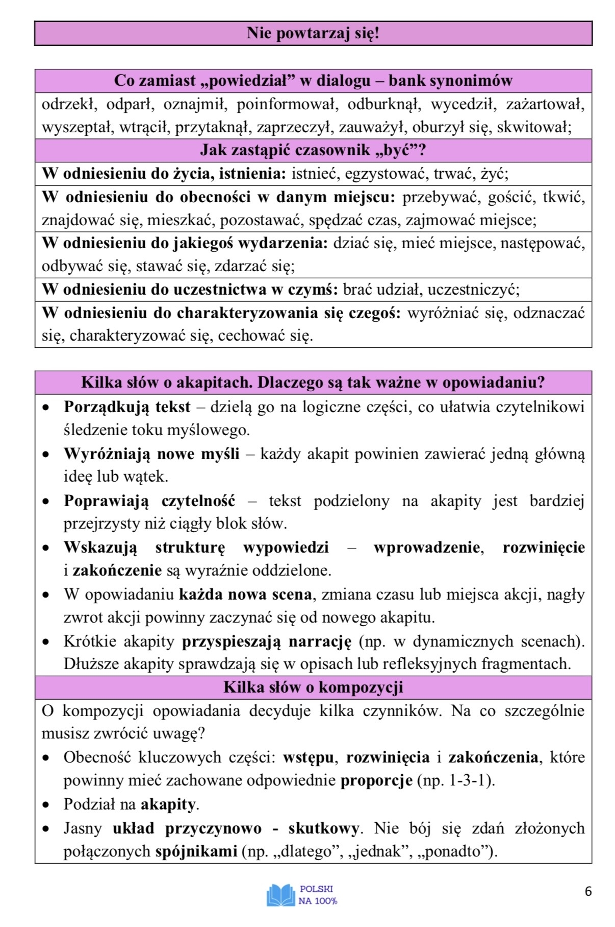 Co znajdziesz w środku? Zasady pisania opowiadania o charakterze twórczym, przykłady, w jaki sposób wpleść w opowiadanie wymagane elementy twórcze, kryteria oceniania opowiadania, schemat, przydatne zwroty, ćwiczenia pomagające uniknąć powtórzeń, przykładowe opowiadania, tematy opowiadań, ćwiczenia twórcze, przydatna checklista.