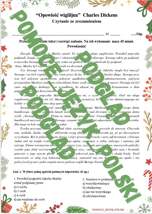 „Opowieść wigilijna” Charles Dickens czytanie ze zrozumieniem