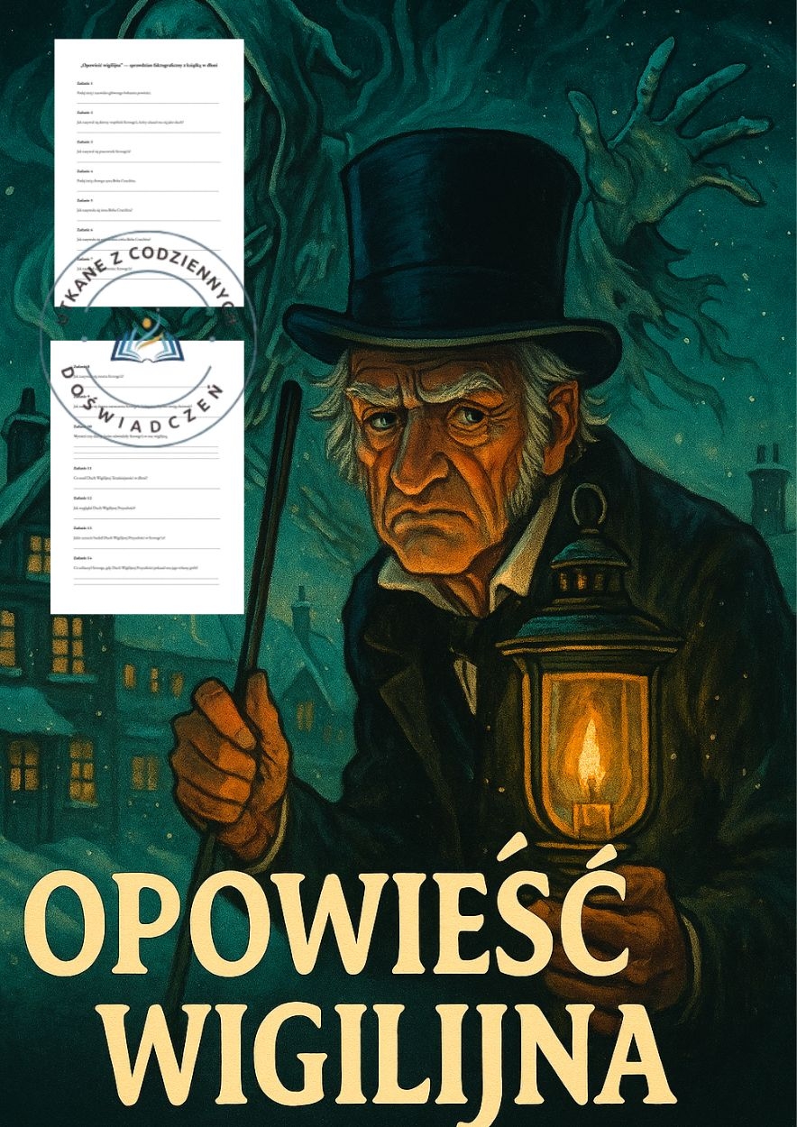 25 starannie dobranych pytań otwartych, które prowadzą ucznia przez całą lekturę — od bohaterów, przez duchy, aż po przemianę Scrooge’a.