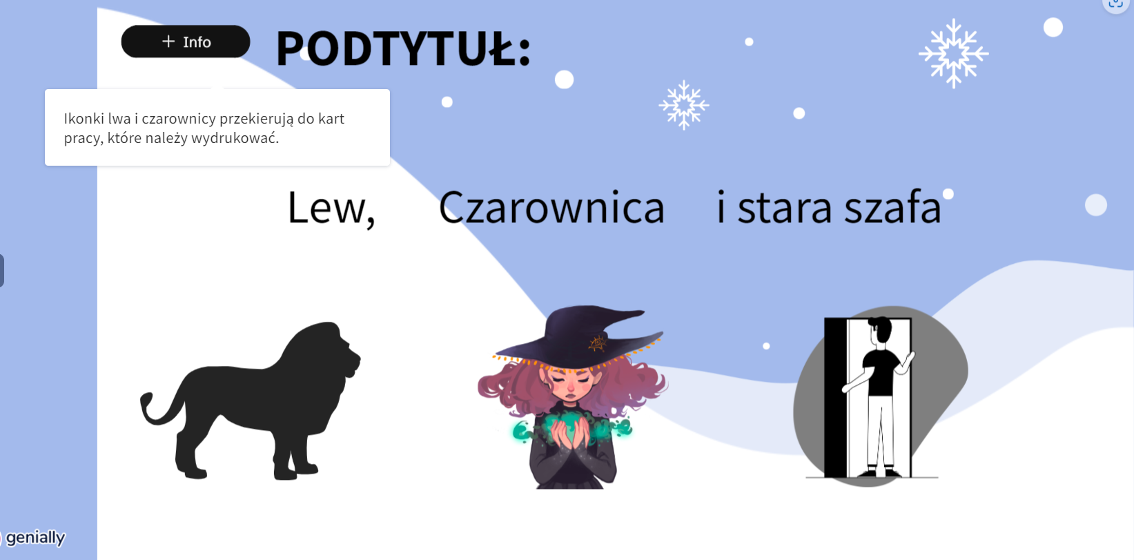 - karty pracy do charakterystyki lwa i czarownicy
