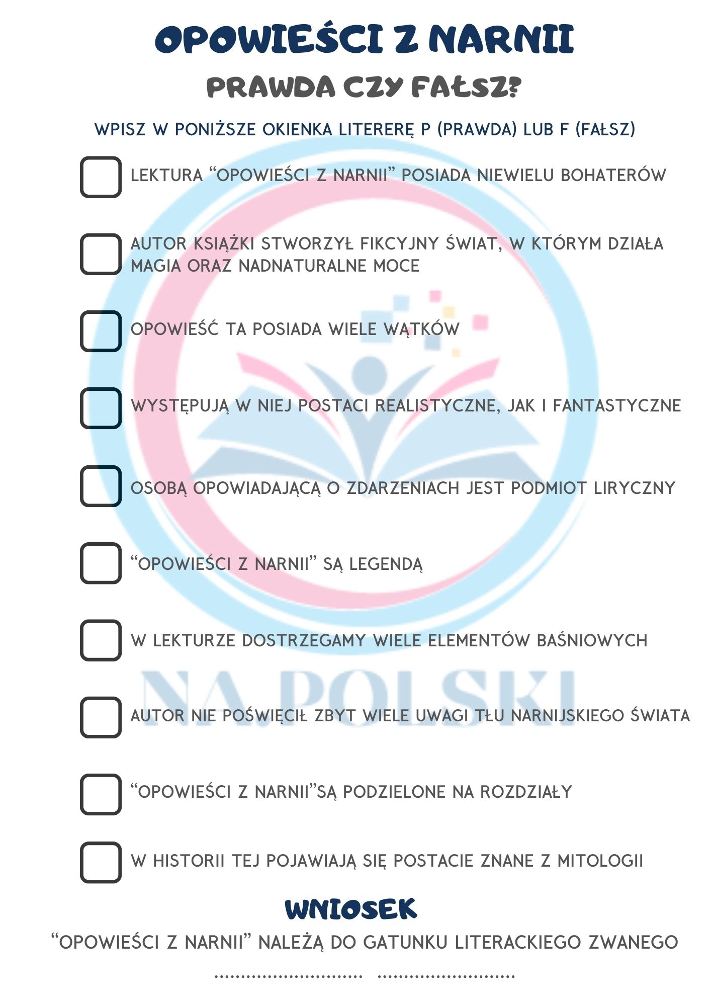 Za pomocą ćwiczenia prawda/fałsz uczniowie określają cechy powieści fantasy.