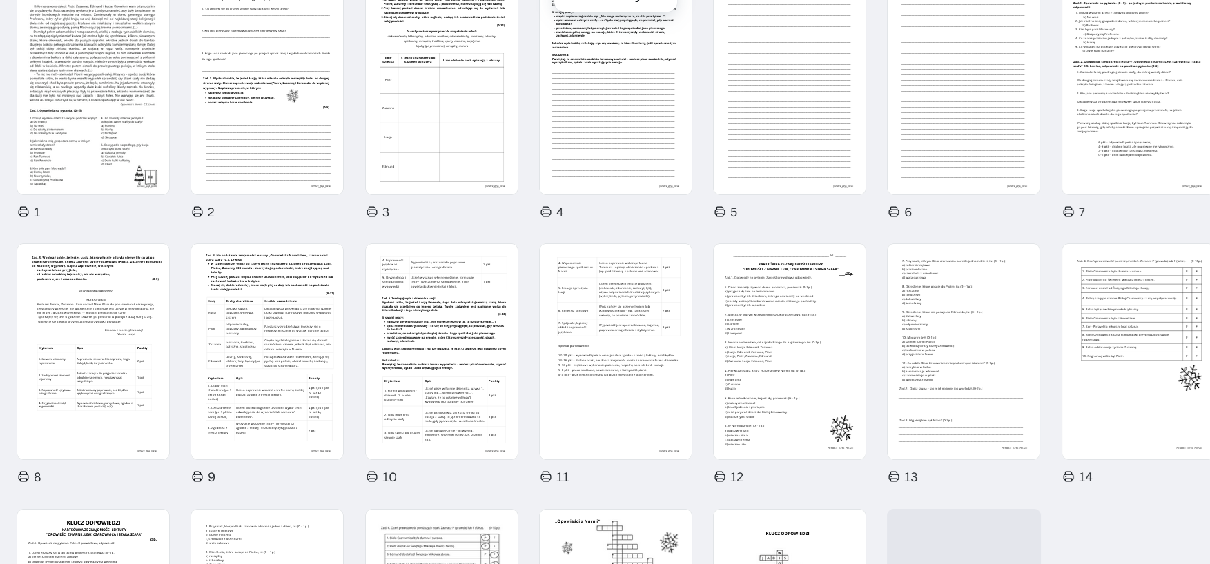 Wszystkie materiały zawierają klucze odpowiedzi.