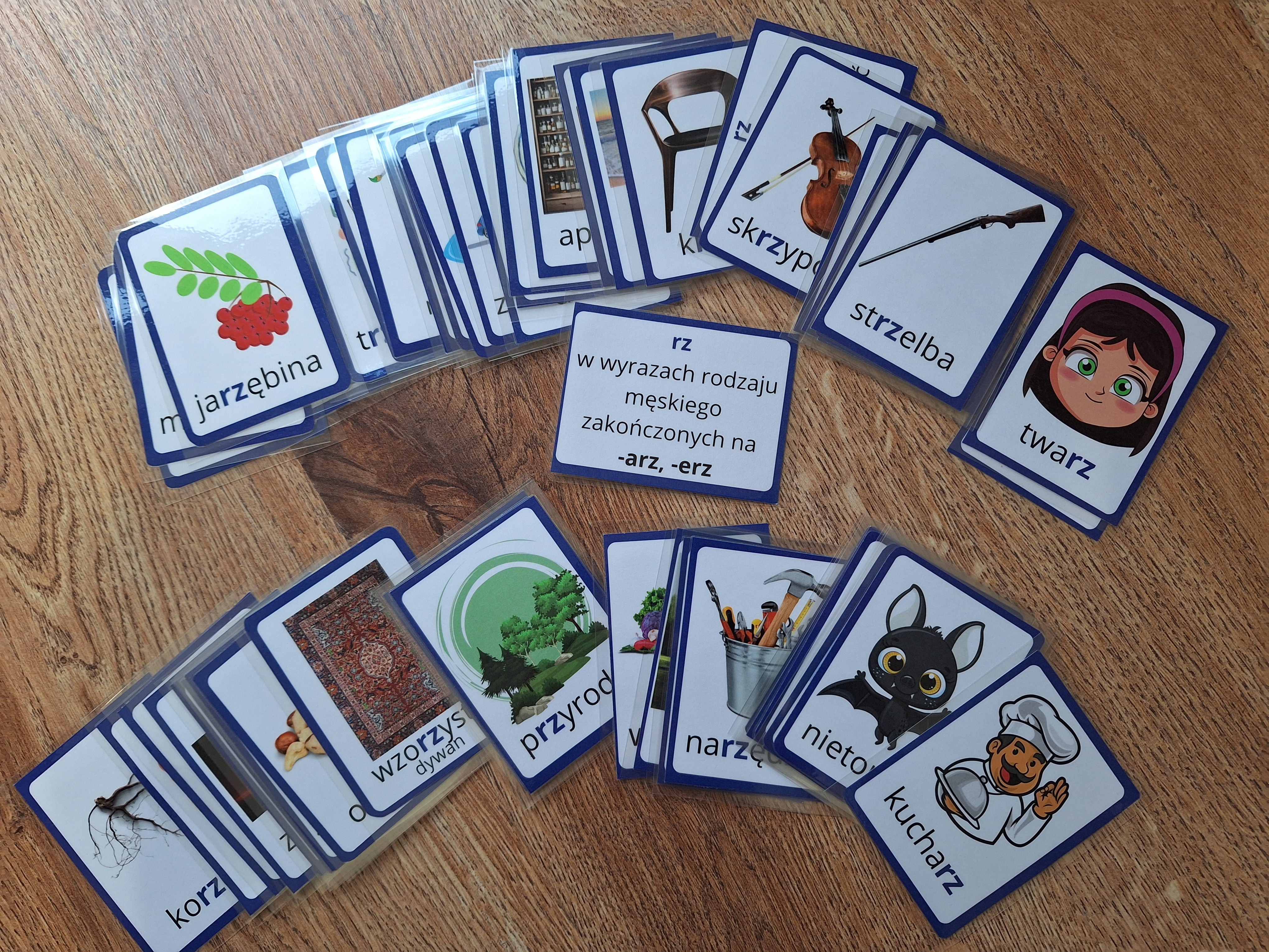 Karty można wykorzystać również do nauki alfabetu oraz układania wyrazów w kolejności alfabetycznej.