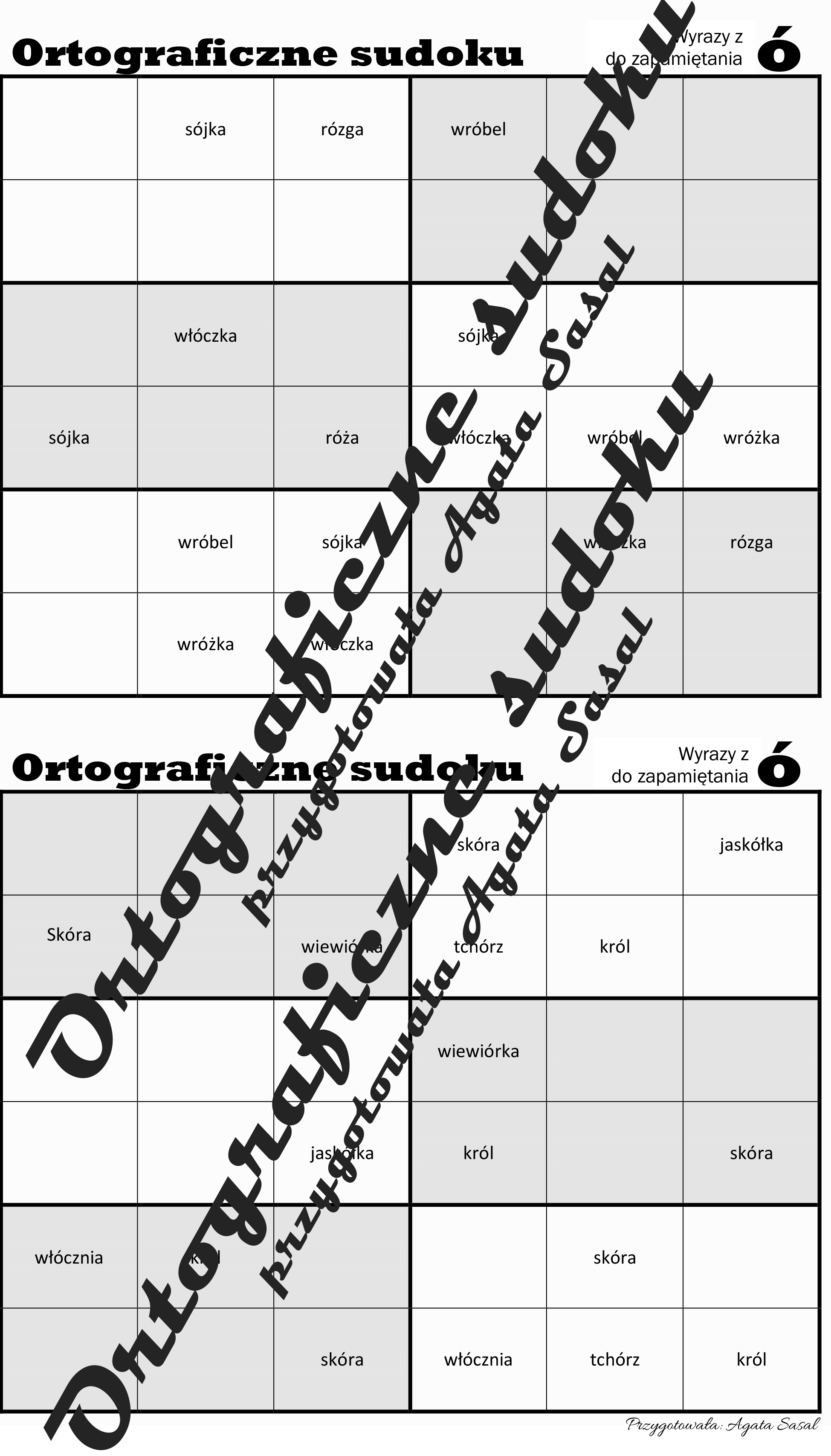 Ortograficzne sudoku wyrazy z "ó" niewymiennym