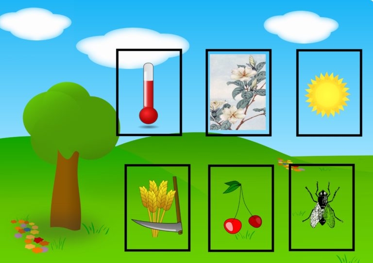 Oznaki lata to gra planszowa utrwalająca u dzieci 6 oznak wiosny (wysoka temperatura na termometrze, kwiaty jaśminu, mocno świecące słońce, żniwa, czereśnie, muchy). Celem jest odnajdywanie na planszy symboli wylosowanych na kostce. Na koniec gracze porównują jak dużo symboli udało im się odnaleźć jako pierwszych.