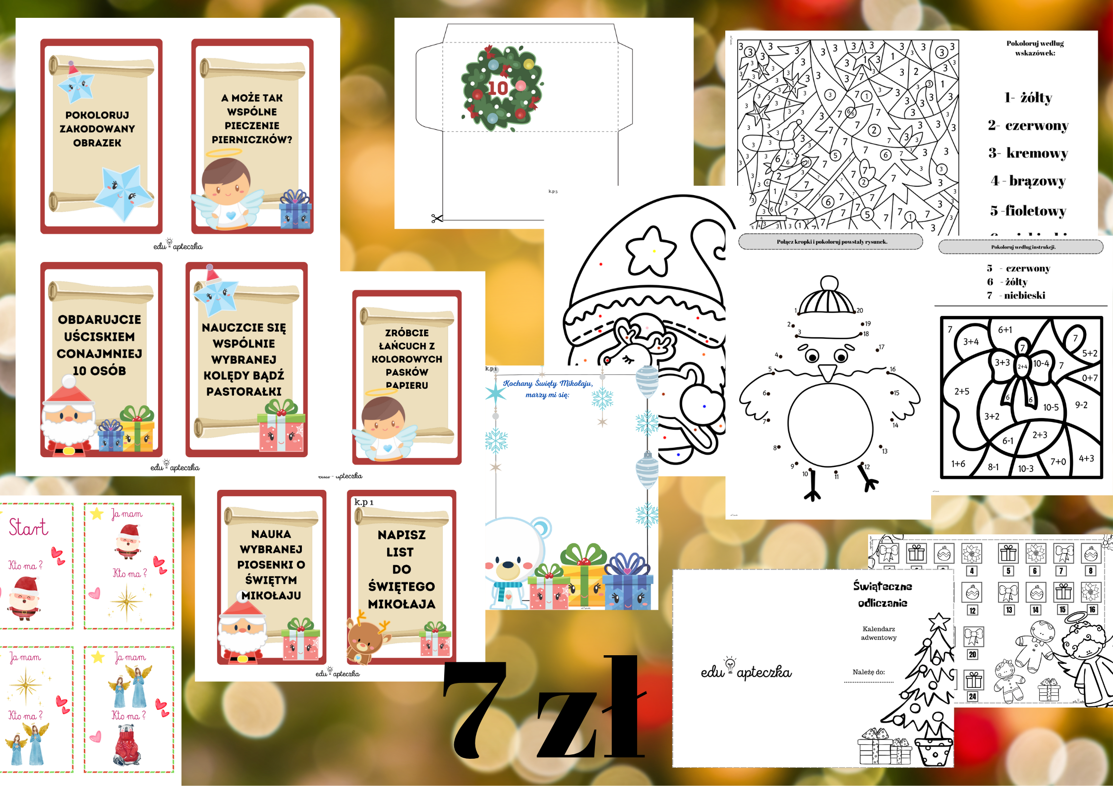 Duża Paczka Świąteczna zawierająca pomoce do drukowania, które można używać co roku :) napisy, dekoracje, kalendarz adwentowy z zadaniami dla grupy oraz paczka pierniczkowa do wykorzystania na zajęciach :) ponad 200 stron do własnego użytku.