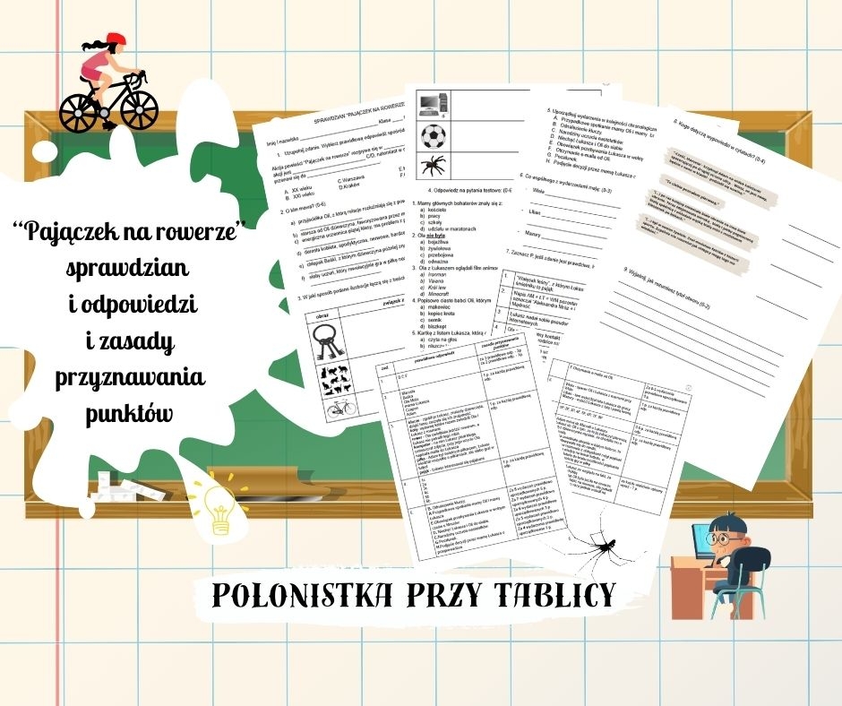 Sprawdzian z lektury do klas piątej - szóstej „Pajączek na rowerze” wraz z odpowiedziami.
