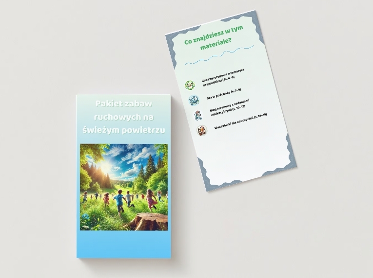Przedstawiamy Pakiet Zabaw Ruchowych na Świeżym Powietrzu – wyjątkowy zestaw gotowych materiałów, który sprawi, że Twoje zajęcia staną się niezapomnianą przygodą. Idealny dla nauczycieli, animatorów i rodziców, którzy chcą połączyć edukację, ruch i zabawę na łonie natury.
