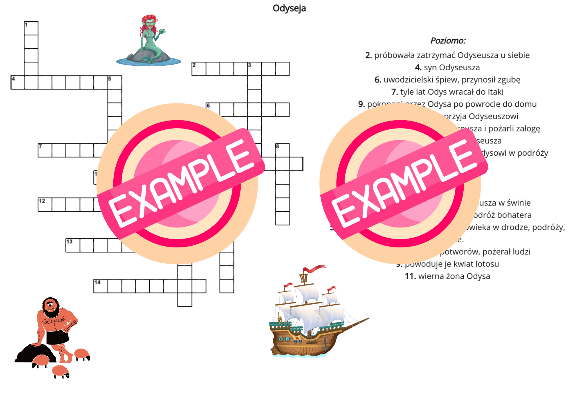 Polecam pakiet krzyżówek powtórkowych, antyk: Biblia, pojęcia i filozofia, bohaterowie mitologii, wojna trojańska, Odyseja, teatr antyczny, mit rodu Labdakidów,