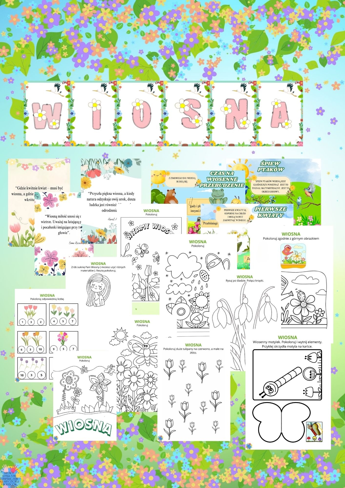 w jednym! 🌿🌞 Z tej okazji przygotowałam wyjątkowe wiosenne karty pracy i kolorowanki, które zachwycą każdego przedszkolaka!