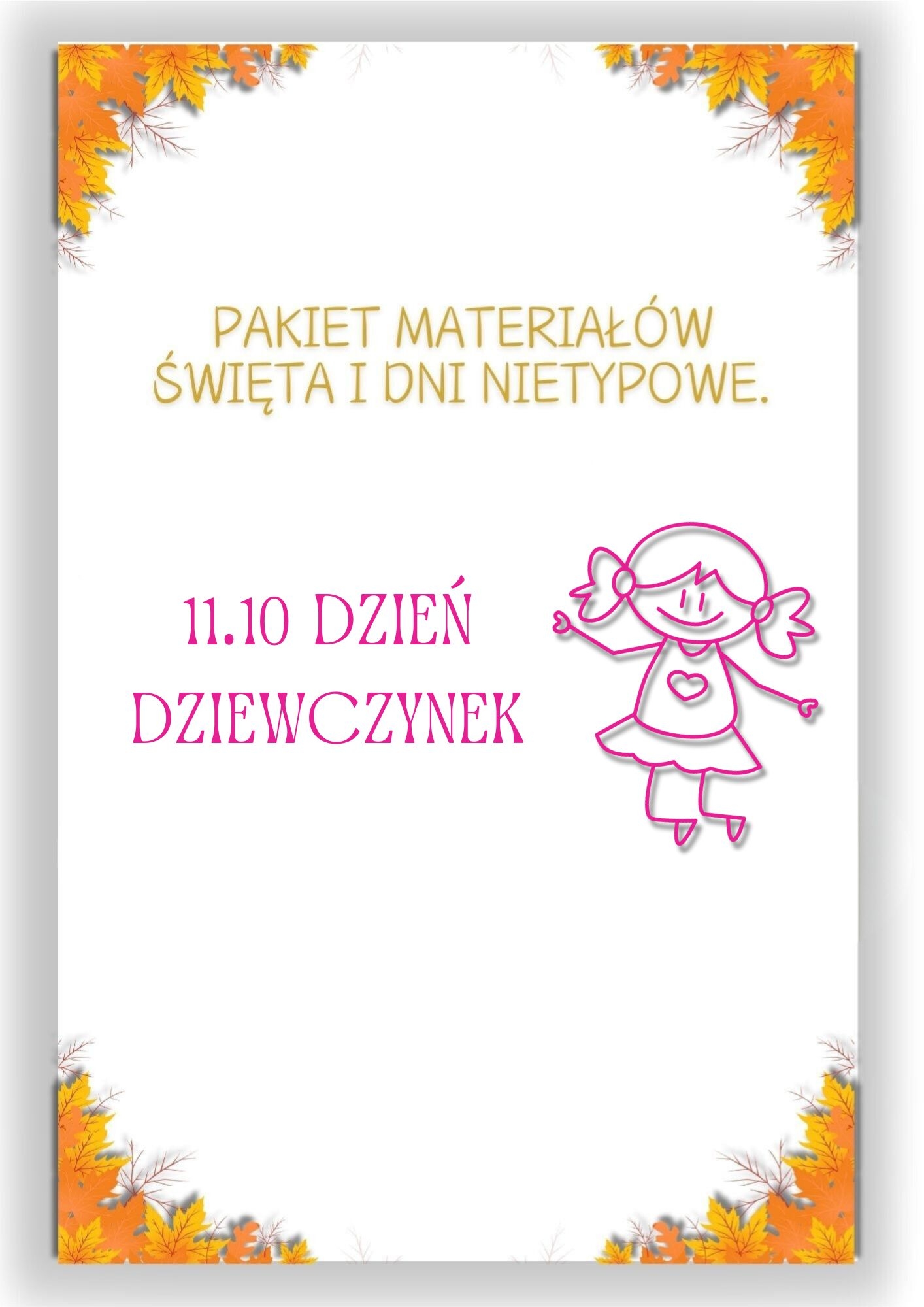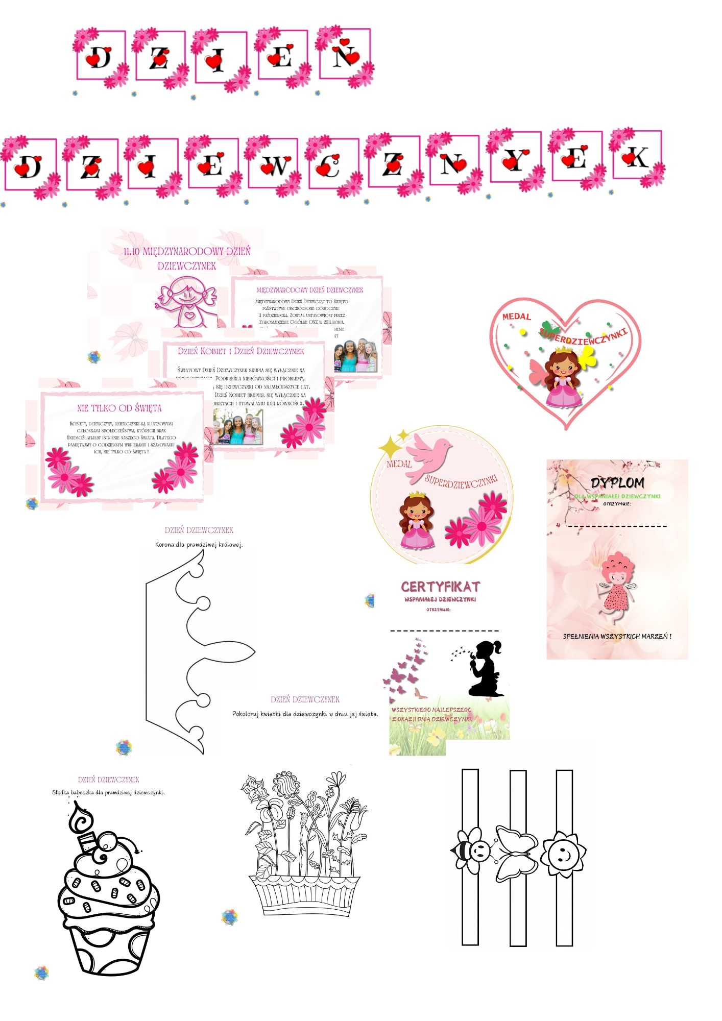 Z okazji Międzynarodowego Dnia Dziewczynek przygotowałam specjalny materiał, który składa się z gazetki do powieszenia w sali, girlanda, dyplomy, odznaki oraz dodatkowy specjalne karty pracy, które mogą wykonać same dziewczynki oraz chłopcy dla dziewczynek.