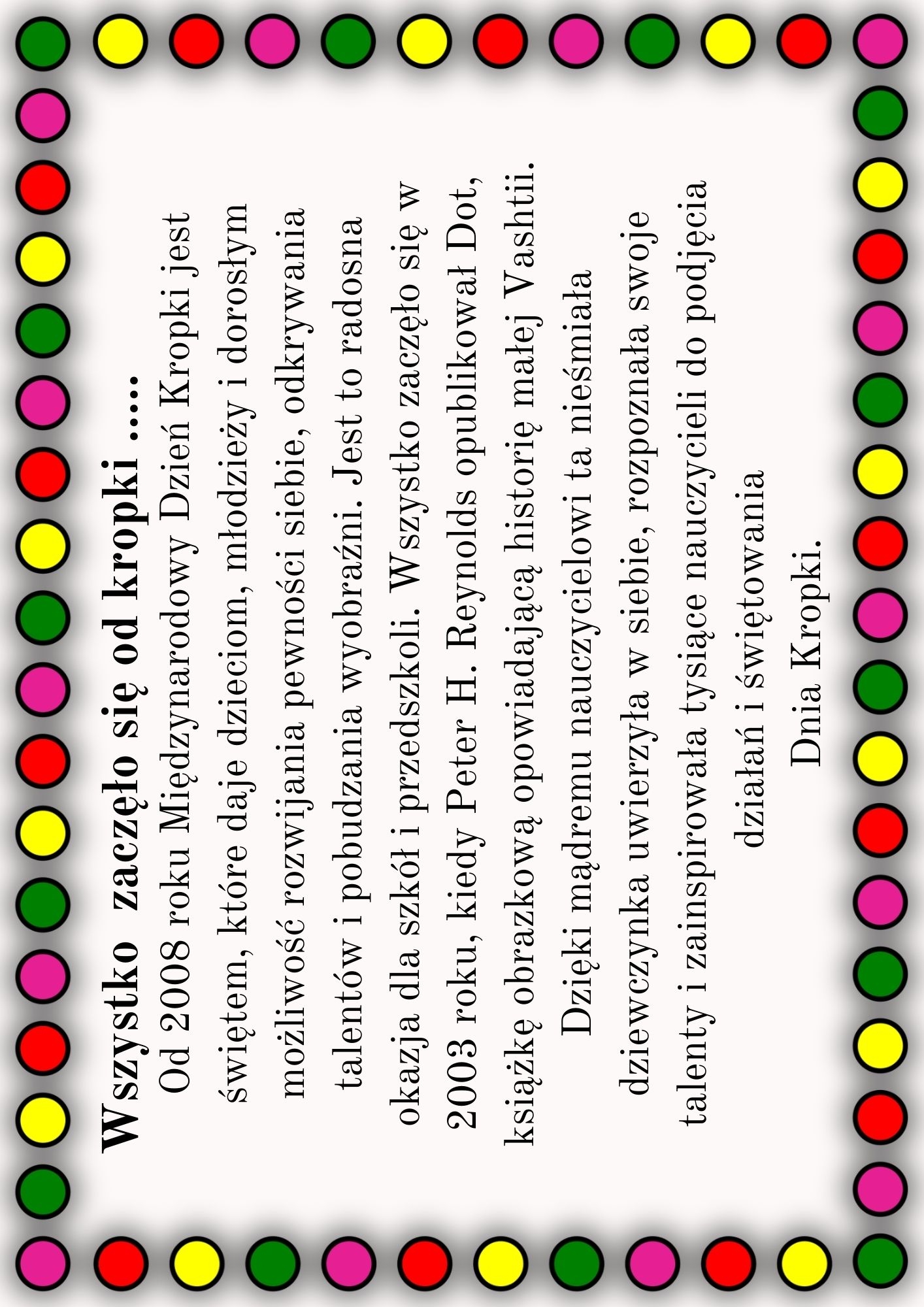 Aby ułatwić Wam świętowanie Międzynarodowego Dnia Kropki, który przypada 15 września, przygotowałam dla Was zestaw 26 kreatywnych kart pracy.