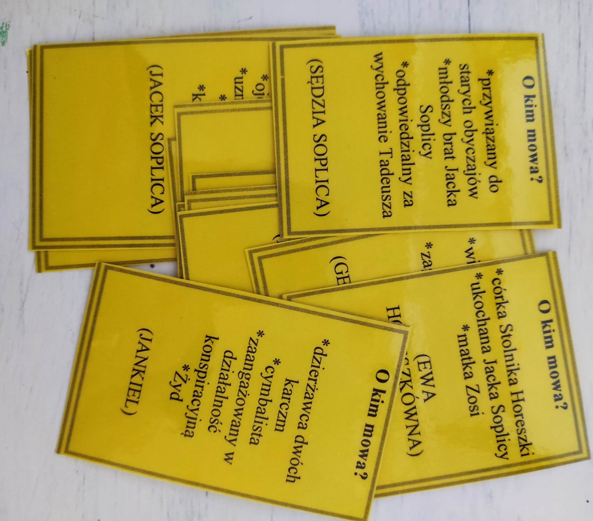 Gra "Pan Tadeusz" O kim mowa?" składa się z 12 kart. Grę można wykorzystać na wiele sposobów: może to być powtórka przed egzaminem, usystematyzowanie wiedzy po omówieniu lektury czy też gra zespołowa. Świetnie się sprawdzi na zastępstwach. Uczniowie bardzo lubią tego typu powtórki. Na każdej karcie znajduje się odpowiedź.